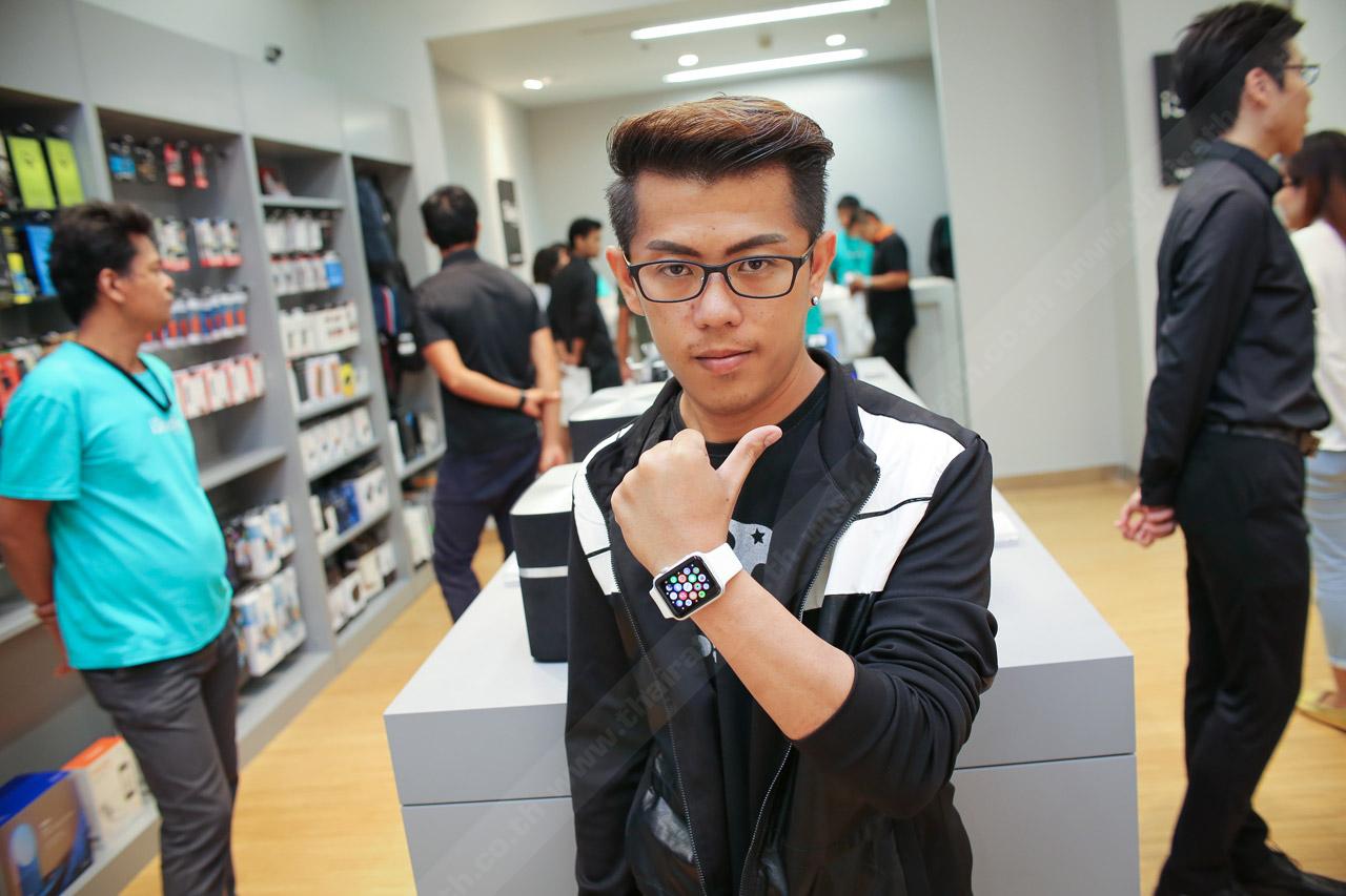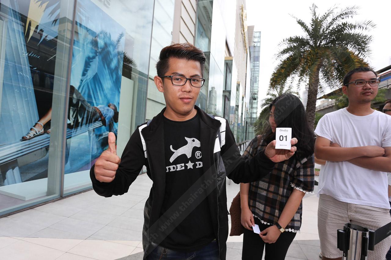 "มาถึงพารากอนประมาณ 6 โมงเช้าครับ ปกติพักอยู่ที่พัทยา แต่ออกเดินทางมากับลูกพี่ลูกน้องเมื่อวานตอนเย็น และมาหาที่พักก่อนมาเข้าคิวซื้อเมื่อช่วงเช้า ทำให้ได้รับคิวลำดับที่ 1 และ 2 ติดกัน โดยบอกกับทางบ้านเพียงว่าจะมาทำธุระที่กรุงเทพฯ เพราะตั้งใจจะมาซื้อใช้เองและซื้อให้แม่ด้วย แค่ได้ซื้อเป็นคิวแรกก็ถือว่าเกินความคาดหวังแล้ว เพราะผมแค่ตั้งใจว่าจะต้องมาซื้อในวันแรกที่เปิดตัวให้ได้ ตั้งแต่มีข่าวว่าแอปเปิลจะผลิตนาฬิกา ก็เฝ้ารอมาตลอดว่าเมื่อไหร่จะผลิตและวางขาย ส่วนสาเหตุที่รอซื้อตอนเปิดตัวในไทยนั้น เป็นเพราะอยากได้บริการหลังการขายและคำแนะนำจากทางร้านที่เราสามารถไว้ใจได้ แม้จะทราบว่าสินค้าของแอปเปิลสามารถส่งเคลมได้ทั่วโลกก็ตาม"