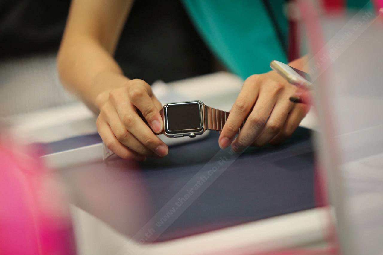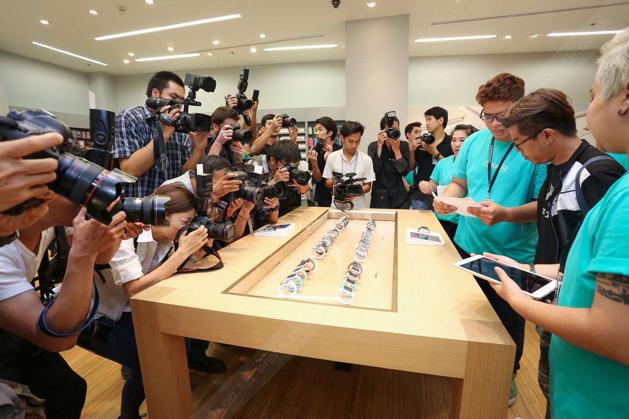 "ไทยรัฐออนไลน์" ได้ไปเก็บภาพบรรยากาศแฟนแอปเปิล ที่มารอคิวต่อแถวเพื่อเป็นเจ้าของแอปเปิล วอตช์ กันที่ร้านไอสตูดิโอ บาย คอปเปอร์ไวร์ด (iStudio by Copperwired) สาขาสยามพารากอน ซึ่งพบว่ามีการตั้งแถวเข้าคิวรอซื้อกันตั้งแต่ก่อน 10.00 น. เวลาเปิดให้บริการของศูนย์การค้า โดยในช่วงแรกที่เปิดจำหน่ายนั้น มีลูกค้าที่สนใจมารอคิวกว่า 10 คน