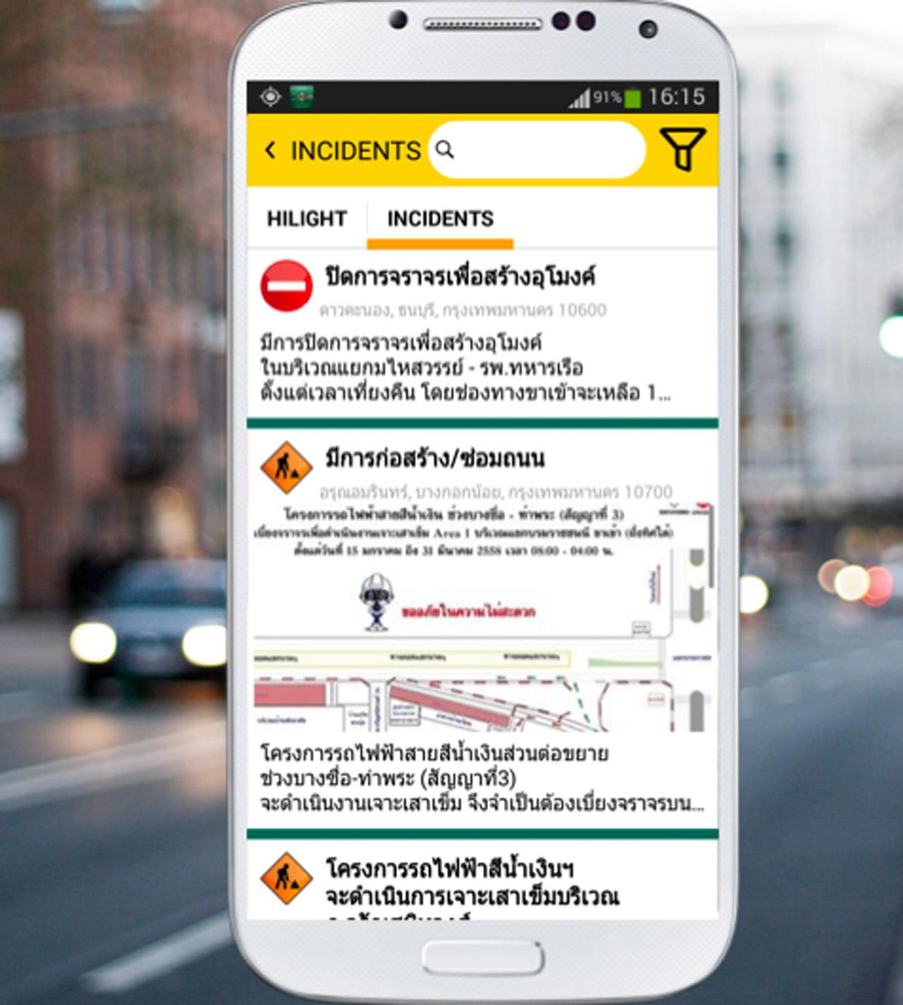 6. Incidents เป็นฟังก์ชั่นเพื่อแจ้งเตือนข้อมูลสำคัญ อาทิ การแจ้งปิดถนน แนวก่อสร้าง อุบัติเหตุรุนแรง หรืองานกิจกรรมที่ส่งผลกระทบต่อสภาพการจราจร โดยจะมีตัวเลขบอกระยะทางว่าห่างจากสถานที่นั้นๆ อีกเท่าไหร่ เพื่อความสะดวกในการเดินทางและปรับเปลี่ยนเส้นทาง