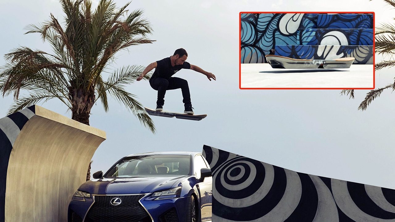บริษัทโตโยต้า ผู้ผลิตรถยนต์รายใหญ่ของญี่ปุ่น ทดลองสร้าง “โฮเวอร์บอร์ด” สเกตบอร์ดไม่มีล้อรุ่นต้นแบบ ที่ใช้เทคโนโลยีเดียวกับรถไฟพลังแม่เหล็กแม็กเลฟ ทำให้มันร่อนลอยเหนือพื้นดินได้ ยังไม่มีแผนวางจำหน่าย.