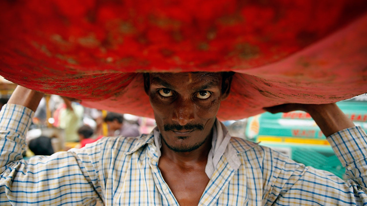 พ่อค้าดอกไม้ชาวอินเดียแบกกระจาดดอกไม้ไว้บนหัว จะไปขายที่ตลาดในเมืองลัคเนา เขาเล่าว่าหากขายดีอาจจะได้กำไรมากระหว่าง 198-264 บาท.