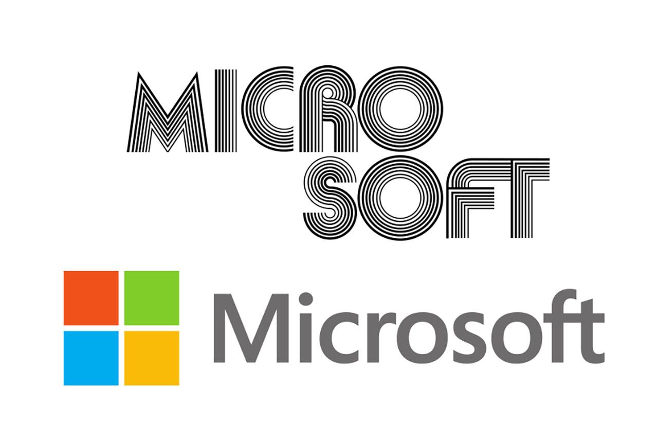 โลโก้แรกของ Microsoft ในปี 1975 ออกแบบได้เข้ากับยุคดิสโก้เสียจริงๆ หลังจากนั้นได้มีการเปลี่ยนโลโก้รวม 5 ครั้ง จนถึงเวอร์ชั่นปัจจุบันที่ใช้มาตั้งแต่ปี 2012 ซึ่งถือเป็นโลโก้แรกของ Microsoft ที่มีการใช้สีสัน