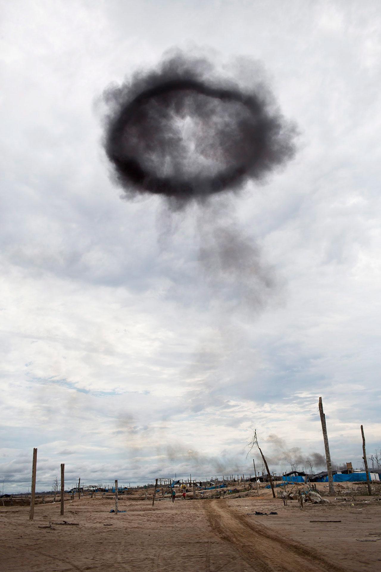 ควันของดินระเบิดไดนาไมต์ จากเหมืองเถื่อนที่ลักลอบทำกันอยู่ในเมืองลาแปมปา ลอยเป็นวงกลมของเปรู โดยเฉพาะในแถบลุ่มน้ำอเมซอน.