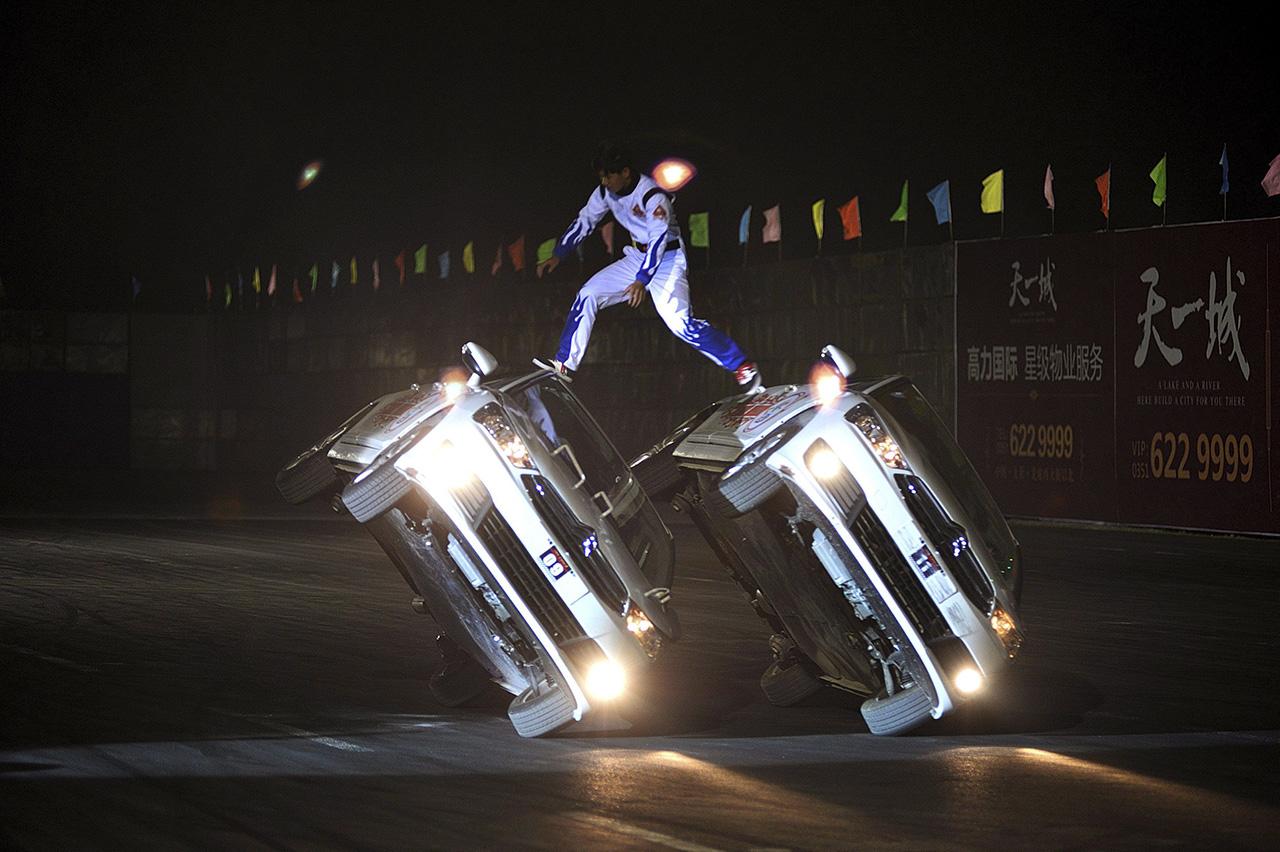 การแสดงขับรถโลดโผน ในเมืองไท้หยวน มณฑลฉานสีของจีน.