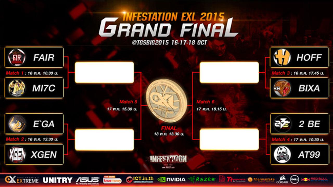ร่วมชมและเชียร์ทีมโปรด ทั้ง 24 ทีม จาก 3 เกม INFESTATION / DOTA2 / CS:GO “สมรภูมิสุดท้าย" หลังจากที่ผ่าฟันกันมาตลอดหลายเดือนของพวกเขา ตลอดทั้ง 3 วัน ตั้งแต่วันที่ 16-17-18 ต.ค. เอาใจแฟนๆ Infestation กับการจัดให้ทุก match แข่งบนสนามเวทีหลัก ที่เนรมิตขึ้นมาอย่างยิ่งใหญ่ ทุกทีมทุกคู่ของเกม Infestation จะได้แข่งบนเวทีหลักแห่งนี้ ทีละคู่ พร้อมกับการบรรยายถ่ายทอดสด (Live Stream!) โดย MCEX และลุงกาก เจ้าเดิม