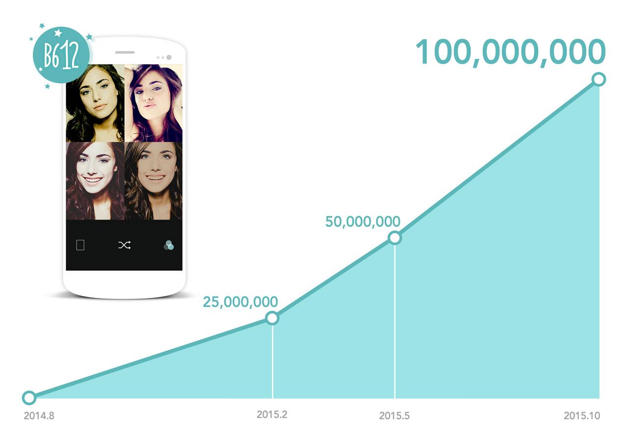 ด้วยฟีเจอร์ที่หลากหลายและเข้าถึงผู้ใช้บริการได้เป็นอย่างดีเช่นนี้ ทำให้ตลาดการใช้งานของแอพ B612 เกิดการขยายตัวและมีการเติบโตอย่างเห็นได้ชัดในแถบยุโรปตะวันออก ไม่ว่าจะเป็นประเทศเบลารุส โรมาเนีย ยูเครน และล่าสุด ทำให้ยอดดาวน์โหลดทั่วโลกของแอพ B612 สูงถึง 100 ล้านดาวน์โหลดแล้ว ณ วันที่ 9 ต.ค.2558 โดยมียอดผู้ใช้ประจำต่อเดือนทั่วโลกสูงถึง 50 ล้านคน