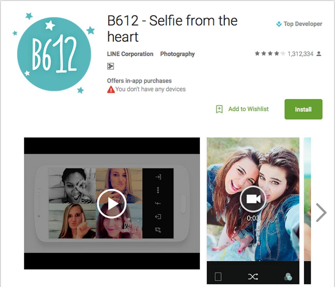 LINE ผู้นำด้านแพลตฟอร์มบนมือถือชั้นนำในประเทศไทย ประกาศยอดดาวน์โหลดทั่วโลกของ 'B612' แอพพลิเคชั่นสำหรับถ่ายเซลฟี่สุดล้ำ ที่มีให้ใช้งานได้ทั้่งในแฟลตฟอร์มไอโอเอส แอนดรอยด์ และวินโดว์สโฟน โดย B612 แอพถ่ายรูปเซลฟี่จาก LINE หลังจากได้เริ่มเปิดให้บริการตั้งแต่เดือนสิงหาคม 2557 ให้ผู้ใช้ได้สนุกไปกับการถ่ายรูป แต่งรูปด้วยฟิลเตอร์ เอฟเฟ็กต์ที่หลากหลาย พร้อมด้วยฟีเจอร์ที่โดดเด่น ตอบโจทย์การใช้งานสำหรับผู้รักการถ่ายรูปเซลฟี่โดยเฉพาะ เช่น การปรับจอถ่ายรูปเป็นกล้องหน้าโดยอัตโนมัติ เมื่อเข้าแอพ การเปลี่ยนฟิลเตอร์ที่มีให้เลือกสรรกว่า 89 รูปแบบได้อย่างง่ายดาย เพียงใช้นิ้วสัมผัสเลื่อนหน้าจอ เป็นต้น แอพ B612 ได้กลายเป็นแอพยอดนิยมของผู้ชื่นชอบวัฒนธรรมการถ่ายรูปเซลฟี่ จนมียอดดาวน์โหลดทั่วโลกสูงขึ้นถึง 50 ล้านเมื่อวันที่ 23 พ.ค.ที่ผ่านมา