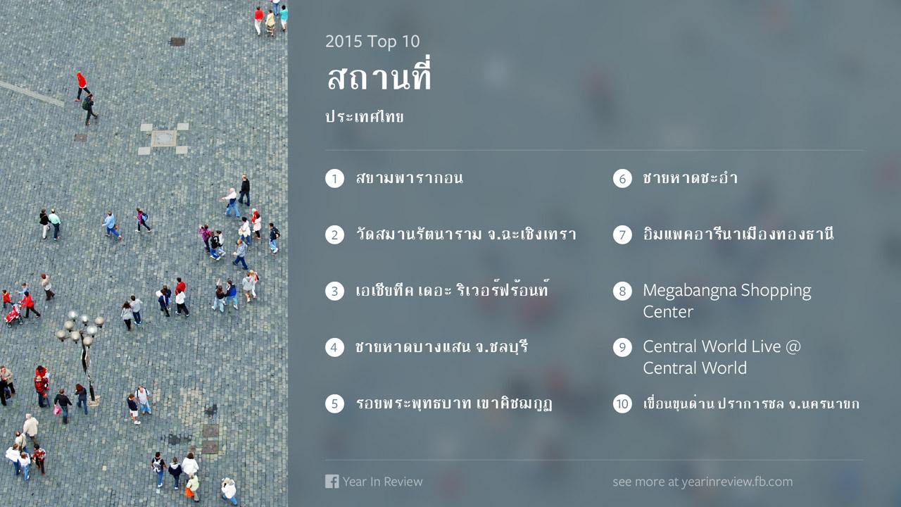 เปิดสถิติจากเฟซบุ๊ก เกี่ยวกับสถานที่ยอดนิยมที่มีการเช็กอินสูงสุดบนเฟซบุ๊กตลอดปี 2558 เผย สยามพารากอน นำโด่งเป็นอับดับ 1 ตามด้วยวัดสมานรัตนาราม…