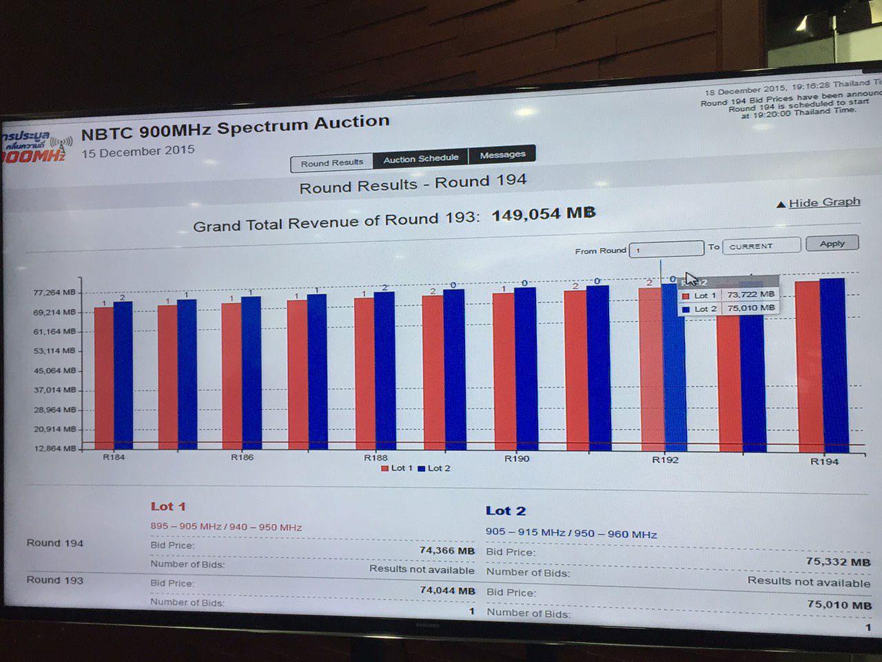 หากไม่นับรวมระยะเวลาข้ามวันข้ามคืนในการประมูลใบอนุญาตคลื่นความถี่ 900 และ 1800 เมกะเฮิรตซ์ ราคาของใบอนุญาตฯ ก็เป็นประเด็นที่หลายฝ่ายให้ความสนใจ เพราะสามารถสร้างประวัติศาสตร์บทใหม่ให้อุตสาหกรรมโทรคมนาคมไทยได้เป็นอย่างดี ด้วยคลื่น 1800 เมกะเฮิรตซ์ ที่มีราคาประมูลรวม 2 ใบอนุญาต อยู่ที่ 80,778 ล้านบาท และคลื่น 900 เมกะเฮิรตซ์ ที่มีราคาประมูลรวมถึง 151,952 ล้านบาท โดยบริษัท แจส โมบาย บรอดแบนด์ จำกัด สามารถคว้าใบอนุญาตคลื่นความถี่ 900 เมกะเฮิรตซ์ ไปครองเช่นเดียวกับ บริษัท ทรูมูฟ เอช ยูนิเวอร์แซล คอมมิวนิเคชั่น จำกัด ขณะที่คลื่น 1800 เมกะเฮิรตซ์ ตกเป็นสิทธิ์ของบริษัท ทรูมูฟ เอช ยูนิเวอร์แซล คอมมูนิเคชัน จำกัด และบริษัท แอดวานซ์ ไวร์เลส เน็ทเวอร์ค จำกัด