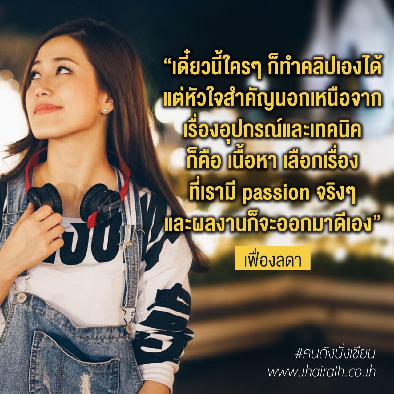 เลือกเรื่องที่สนใจ เรื่องที่ถนัด เรื่องที่เรามี passion จริงๆ และผลงานก็จะออกมาดีเอง เฟื่องเชื่อแบบนั้นและหวังว่าจะได้เห็นคนไทยเป็น Youtuber กันเยอะขึ้นนะคะ