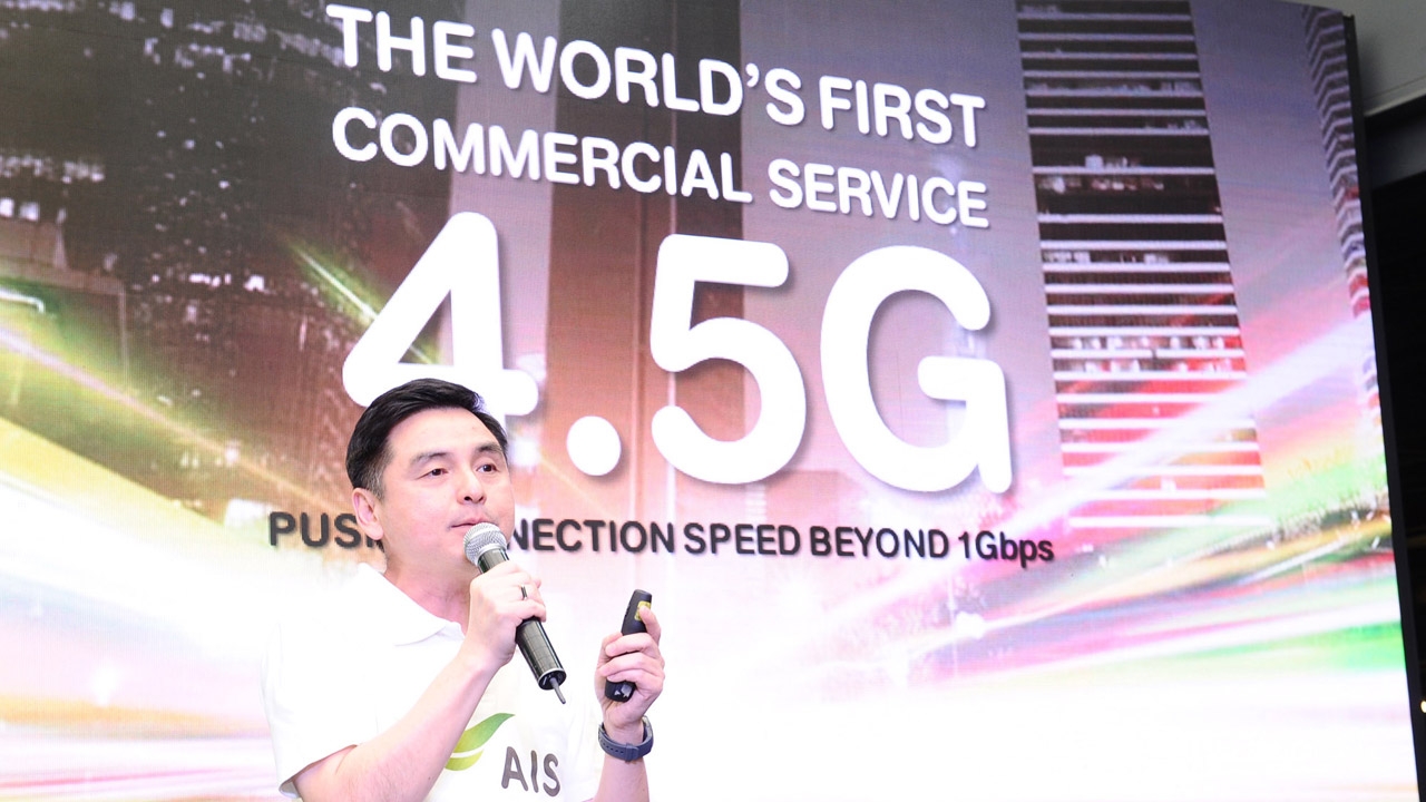 เอไอเอสเปิดบริการ 4.5 จี เชิงพาณิชย์ เป็นรายแรกของโลก โชว์ความเร็วสูงสุด 1Gbps พร้อมให้บริการย่านใจกลางเมือง ก่อนขยายไปหัวเมืองใหญ่ในเดือน เม.ย.นี้...