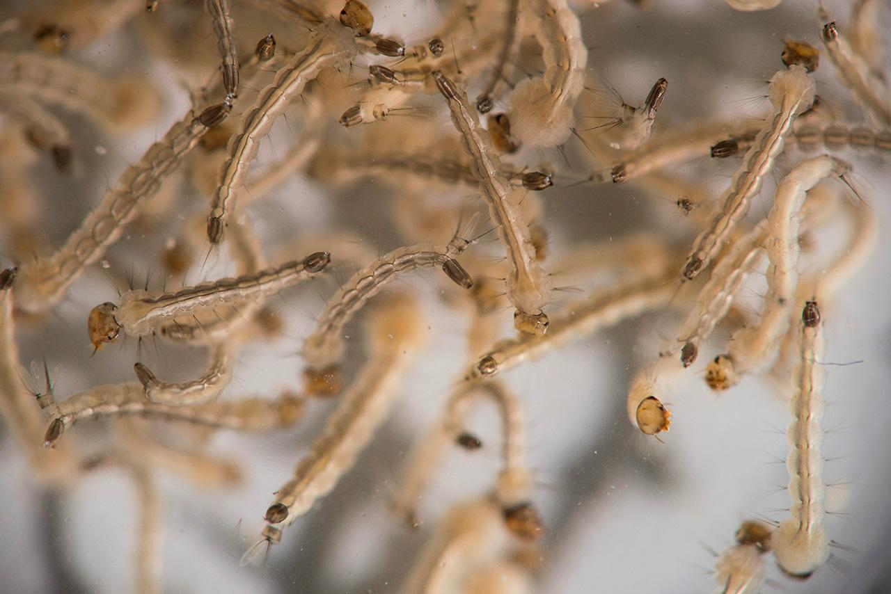 พนักงานสาธารณสุขออกฉีดยาฆ่ายุง ที่ในบริเวณแซมบาโดรม ฆ่าลูกน้ำของยุงลาย พาหะของเชื้อไวรัสโรคซิกา ที่ระบาดอยู่ในกรุงริโอ เด จาเนโร เมืองหลวงบราซิล ยังยืดเยื้ออยู่ โรคอาละวาดมา 2 ครั้งแล้ว เมื่อคราวทศวรรษของ ปี พ.ศ. 2483 และ 2493 ครั้งนี้ทางการบราซิลก็ยังส่ายหัวที่จะมีโอกาสกำจัดยุงลายเหล่านี้ เสียตั้งแต่ตอนเป็นลูกน้ำ (ภาพล่าง) ก็ยังไม่มีวี่แววว่าจะปราบพวกมันได้ง่ายๆ เหมือนเมื่อ 2 คราวก่อน.