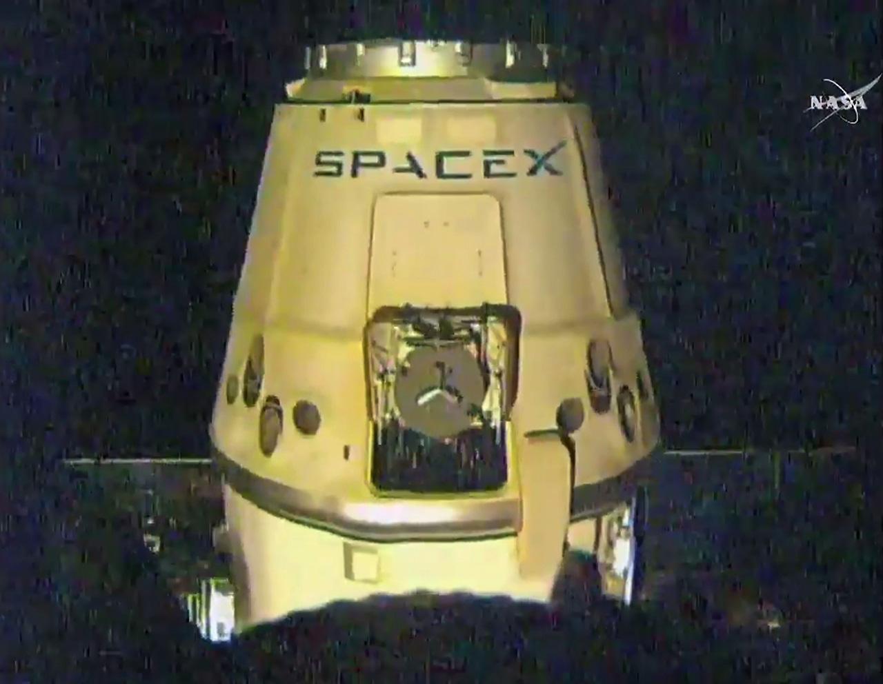 ยานอวกาศลำเลียง, ยานอวกาศขนส่งสเปซ เอ็กซ์ ดรากอน แยกตัวออกจากสถานีอวกาศสากล เพื่อกลับบ้าน พร้อมด้วยข้อมูลทางวิทยาศาสตร์ ส่งมอบให้กับองค์การอวกาศสหรัฐฯ.