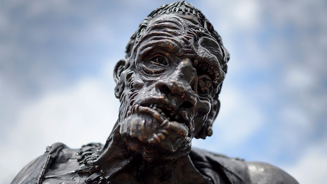รูปหล่อของแฟรงเกน สไตน์ ตั้งแสดงในงานที่มีชื่อว่า “แฟรงเกนสไตน์ การเปิดยุคมืด” ที่นครเจนีวา ประเทศสวิตเซอร์แลนด์ ตามตำนานเล่าว่า นักวิทยาศาสตร์คนหนึ่ง ได้นำเอาซากศพมาชุบให้กลับมีชีวิตขึ้น แต่ทำ ให้เขาต้องพบกับความหายนะในที่สุด.