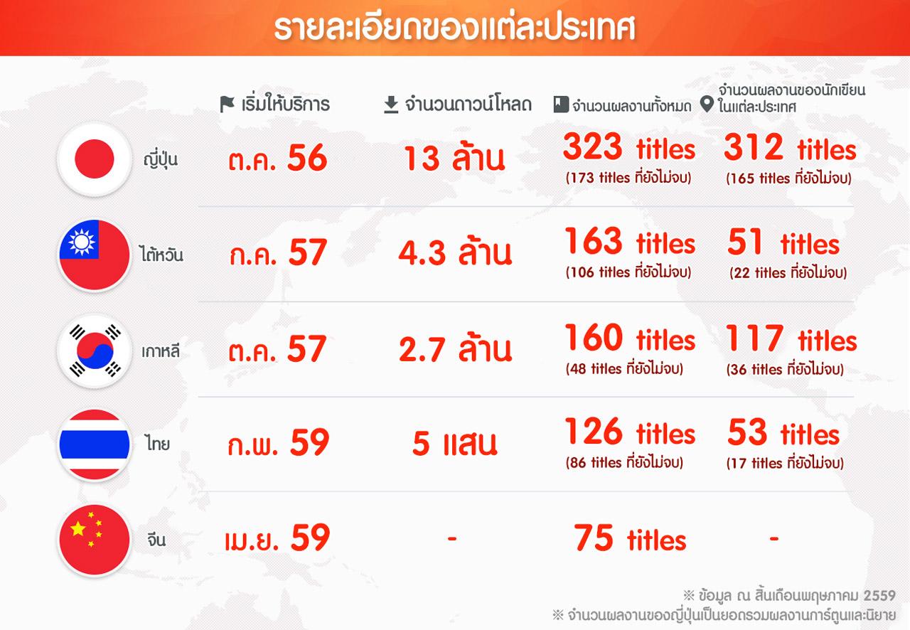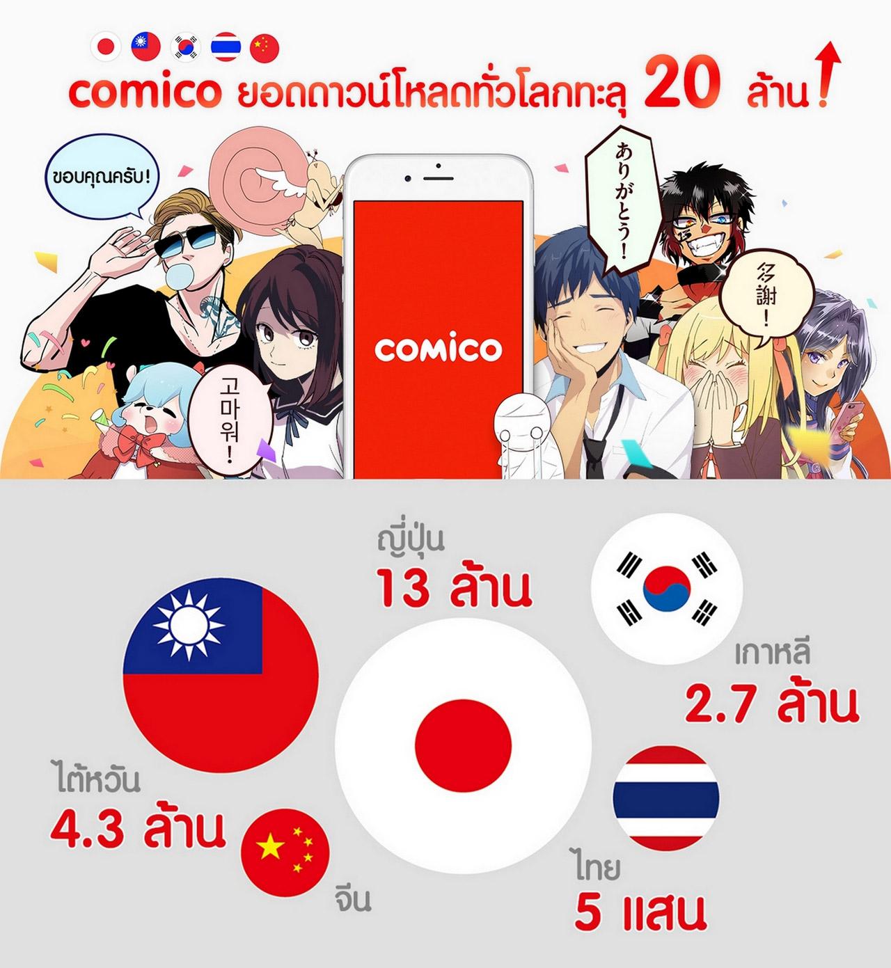 โดยญี่ปุ่นมากสุด 13 ล้านดาวน์โหลด ส่วนไทย ประเดิมที่ 5 แสนดาวน์โหลด พร้อมจัดโครงการประกวด "Comico New Blood Contest" เฟ้นหานักเขียนเลือดใหม่ คัด 40 เรื่องเด็ดไปติดสินรอบชิงฯ...