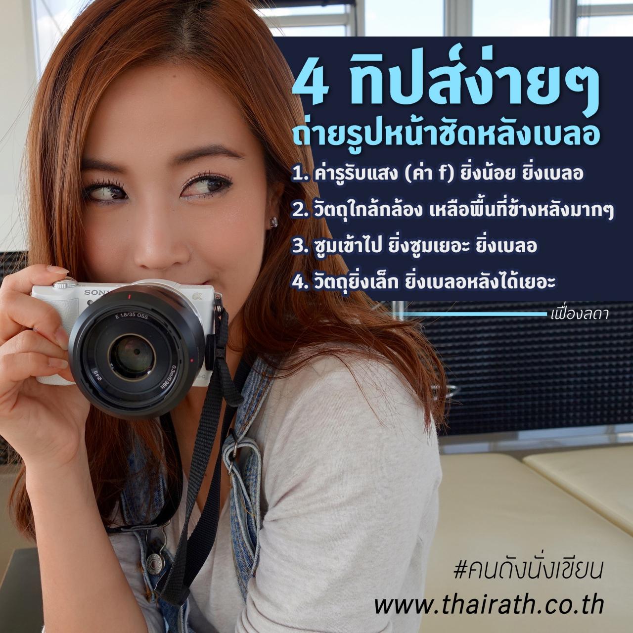 สมัยนี้ใครๆ ก็อยากมีรูปสวยๆ ลงโซเชียล ไม่ว่าจะเป็นรูปคน รูปอาหาร รูปของ ฯลฯ เทรนด์การถ่ายรูปยังเป็นที่นิยม และการถ่ายภาพประเภทหนึ่งที่ “เขาว่าสวย” ปัจจัยหลักๆ ก็คือการถ่ายรูปแบบ “หน้าชัดหลังเบลอ” ยิ่งหลังละลายได้เท่าไรยิ่งดูคูล จริงๆ แล้วถ้าจะเอาแบบเจาะลึกก็มีปัจจัยที่ต้องพูดถึงหลายอย่าง แต่วันนี้เฟื่องจะเอาหลักการง่ายๆ เป็นวิธีลัด ที่ทำให้เรามีรูป “หน้าชัดหลังเบลอ” ได้ด้วย 4 ทิปส์ง่ายๆ มาให้ทำตามกันค่ะ