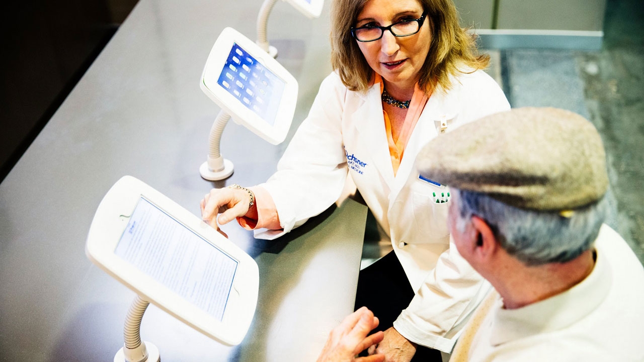นายแพทย์ริชาร์ด เปิดเผยการรักษาผู้ป่วยแบบไฮเทคภายใต้การดูแลของ Ochsner ว่า รูปแบบการรักษาจะมีการมอบไอแพดให้กับแพทย์ เพื่อความสะดวกในการตรวจเช็กผลการรักษา ประวัติและข้อมูลผู้ป่วย ใช้แอพพลิเคชั่นคำนวณค่าต่างๆ หรือเข้าถึงแนวทางการรักษาจากเนื้อหาที่อยู่บนไอคลาวด์เพื่อใช้ประกอบการตัดสินใจในการรักษา เป็นต้น ส่วนผู้ป่วยในก็จะได้รับไอแพดเช่นกัน เพื่อเปิดโอกาสให้เข้าถึงข้อมูลแพทย์ พยาบาล ทีมบุคลากรที่เกี่ยวข้องกับการรักษา รวมถึงผลการรักษา ผลการตรวจ ข้อมูลขั้นตอนการรักษาและข้อมูลยาที่ได้รับจากการรักษา