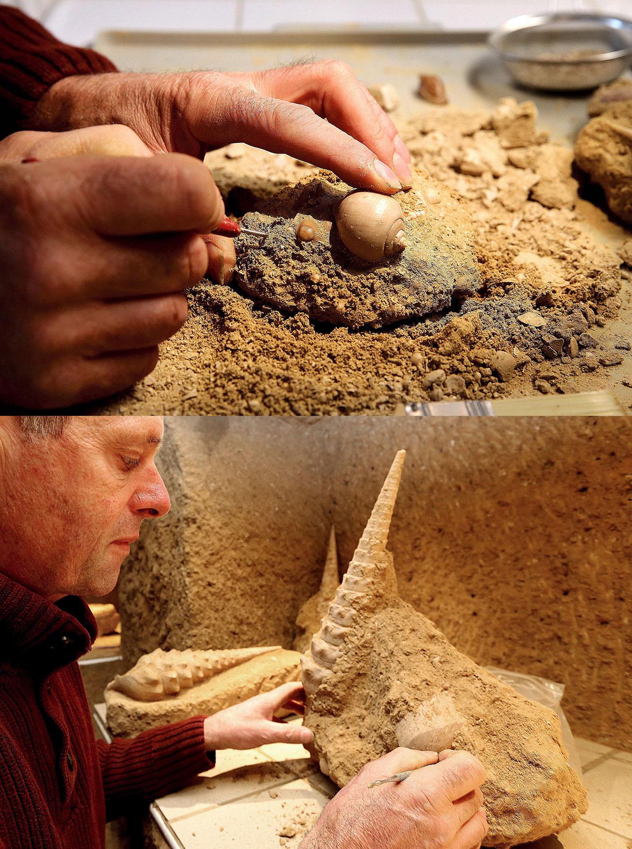 ศึกษาซากสัตว์และพืชโบราณ ปรากฏรูปลอยอยู่ในแผ่นหิน ได้ค้นพบแหล่งสุสานหอยโบราณ ในถ้ำแห่งหนึ่งของฝรั่งเศสเต็มไปด้วยซากเปลือกหอยทะเล เรือนเป็นพันๆตัว ซึ่งมีชีวิตอยู่เมื่อ 45 ล้านปีก่อน จมฝังลึกอยู่ในหินปูน ที่ทับถมกันเป็นชั้น.