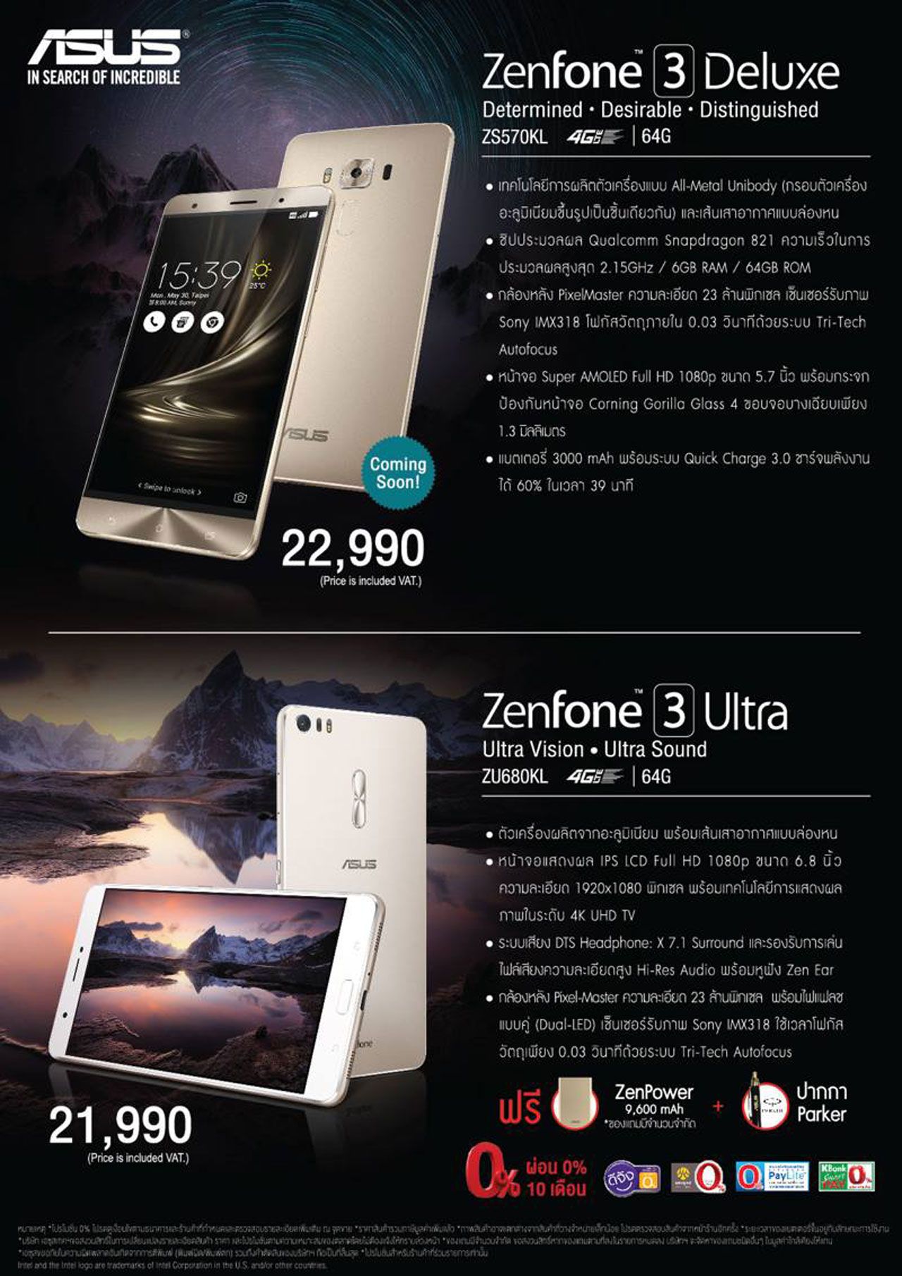 ก็จัดโปรโมชั่นลดราคา 50% สำหรับ Zenfone Zoom เหลือ 8,490 บาท พร้อมของแถม ZenPower 9,600 mAh และปากกา Parker หรือว่าชอบ Zenfone3 ซีรีส์ ก็ไปจับจองเป็นเจ้าของกันได้
