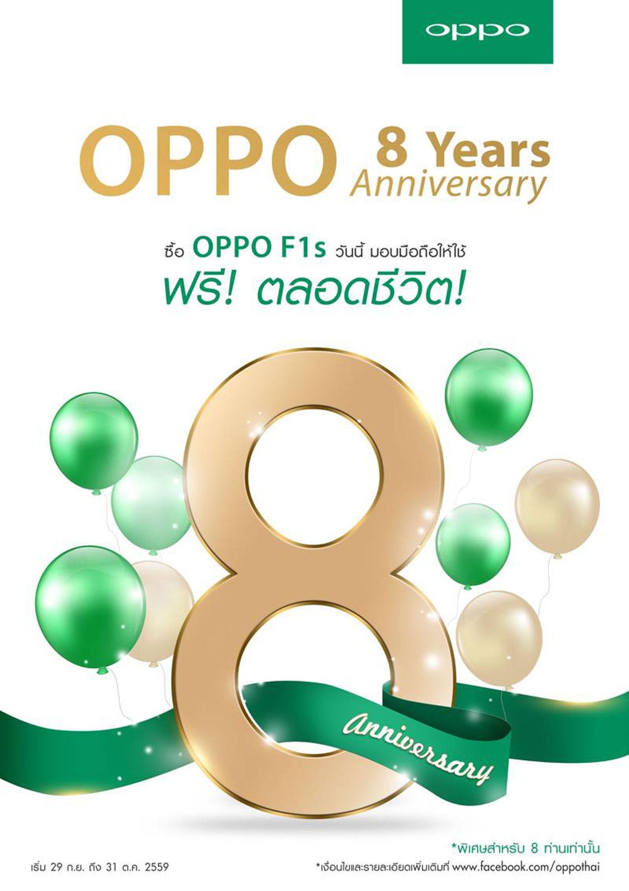 ทำโปรโมชั่นเอาใจผู้ซื้อสมาร์ทโฟนรุ่น F1s แบบสุดๆ เพราะออปโป้ใจดี ให้ลุ้นใช้มือถือออปโป้ฟรีตลอดชีวิต พร้อมของแถมตามโปรโมชั่นของแต่ละรุ่นอีกเพียบ