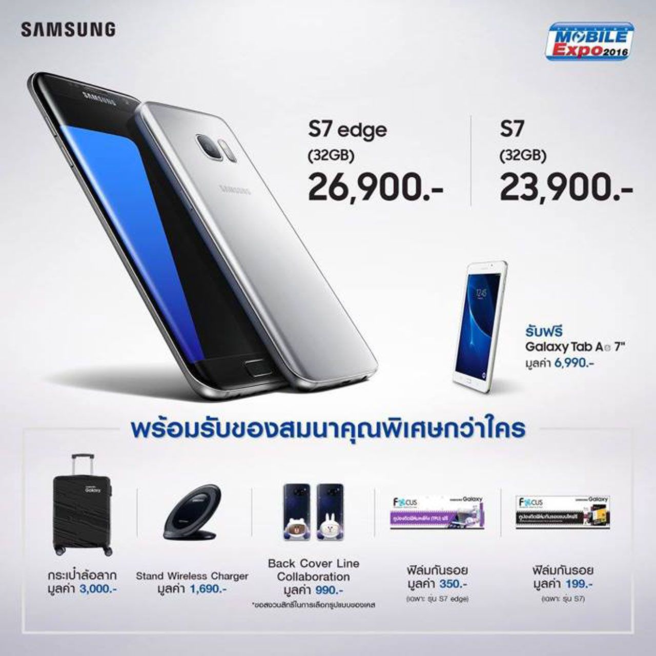 ยังไม่ได้เปิดเผยข้อมูลโปรโมชั่นเต็มรูปแบบ แต่ Galaxy J7 version2 เหลือ 7,900 บาท จาก 8,900 บาท ส่วน Galaxy S7 และ S7 edge มาพร้อมราคาพิเศษ และของแถมรวมมูลค่านับ 10,000 บาท อาทิ แท็บเล็ต Tab A 7นิ้ว กระเป๋าล้อลาก แท่นชาร์จไร้สาย เคสจาก LINE และฟิล์มกันรอย และบอกเลยว่าไม่ได้มีแค่นี้ เพราะซัมซุงยกมาขายครบไลน์แทบทุกรุ่น แถมหลายๆ รุ่น ก็ลดราคาหนักด้วยเช่นกัน นอกจากนี้ยังมีโปรจากค่ายมือถือเปิดตัวออกมาให้ตื่นเต้นแล้ว ยกตัวอย่าง “ทรูมูฟ เอช” ที่ประกาศราคาพิเศษ Galaxy Note5 ขายในงาน 13,900 บาท หรือซื้อ 1 แถม 1 กับ Galaxy S7edge หรือ S7 รับฟรี Galaxy Tab A 7นิ้ว มูลค่า 6,990 บาท พร้อมของแถม