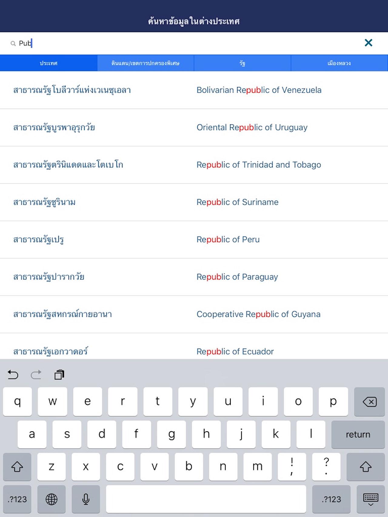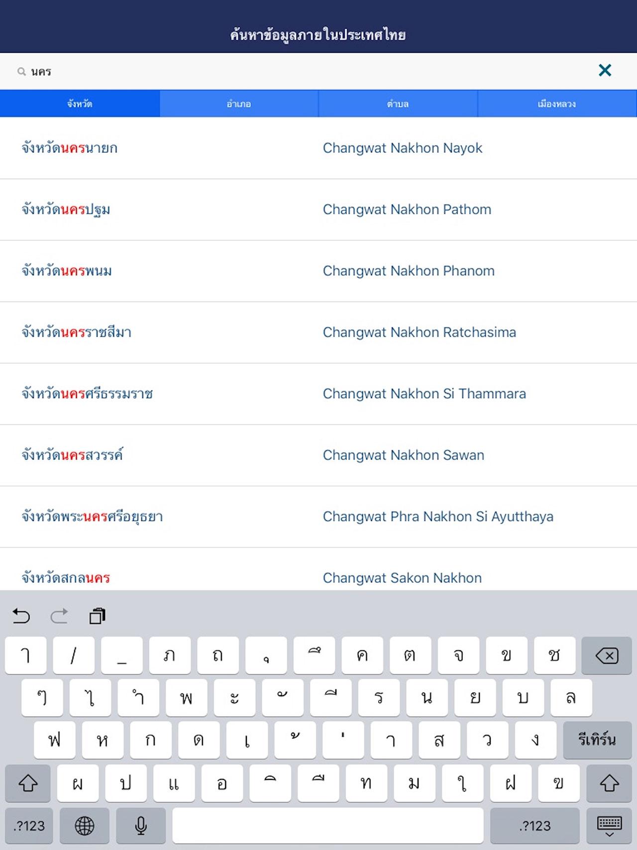 1. เพื่ออำนวยความความสะดวกในการค้นหาตัวสะกดที่ถูกต้องของชื่อประเทศ เมืองหลวง และเขตการปกครองทั่วโลก รวมถึงรายละเอียดจังหวัด อำเภอ ตำบลในประเทศไทย ซึ่งผู้ใช้สามารถพิมพ์ตัวอักษรตั้งต้น หรือคำใดคำหนึ่งเพื่อค้นหา โดยใช้ได้ทั้งภาษาไทยและอังกฤษ