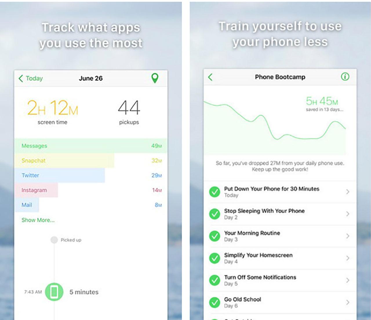 สำหรับคนที่ใช้ระบบ iOS แอพพลิเคชั่น Moment - Screen Time Tracker สามารถช่วยเก็บข้อมูลการใช้หน้าจอมือถือของเราได้ ว่าในหนึ่งวันเราหยิบมือถือขึ้นมาเปิดกี่ครั้ง แต่ละครั้งใช้เวลาไปกี่นาที และรวมทั้งหมดในหนึ่งวันใช้มือถือทั้งหมดกี่ชั่วโมง หากเลือกใช้ pro feature ก็จะสามารถดูได้ด้วยว่าแต่ละวันที่เราเปิดมือถือเราใช้แอพอะไรบ้าง และตั้งเวลาลิมิตการใช้มือถือของเราในแต่ละช่วงได้