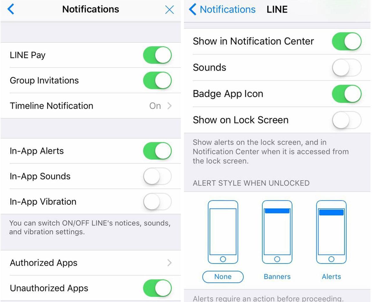 การปิด Notification หรือปรับการขึ้นแจ้งเตือนก็ช่วยทำให้เรามีสมาธิกับสิ่งที่เราทำอยู่ได้มากขึ้น เช่น หากใครรู้ตัวว่าติดแชตอาจเลือกปรับการแจ้งเตือนใน Line โดยตัดการขึ้นข้อความขณะที่เราล็อกหน้าจอ และข้อความแจ้งเตือนแบบ banner ออกไป เหลือไว้แค่เลข notification ใน Badge app Icon ที่แจ้งขึ้นมาเป็นเลขเวลามีคนส่งข้อความใหม่เข้ามา