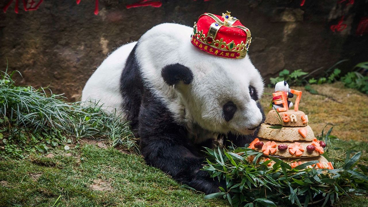แพนด้ายักษ์ปาซือ กำลังทำจมูกฟุตฟิตสูดดมเค้กวันเกิดของตนที่ได้จากทีมผู้เลี้ยงดูมอบให้เป็นของขวัญในวาระที่แพนด้าขวัญใจมหาชนอายุครบ 37 ปี และมีอายุแก่ที่สุดในโลกไปแล้ว ขณะนี้ปาซือยังอยู่ดีมีสุขในสถาบันวิจัยแพนด้าโลกเมืองฝูโจว ในมณฑลฝูเจี้ยน ทางตะวันออกของประเทศจีน.