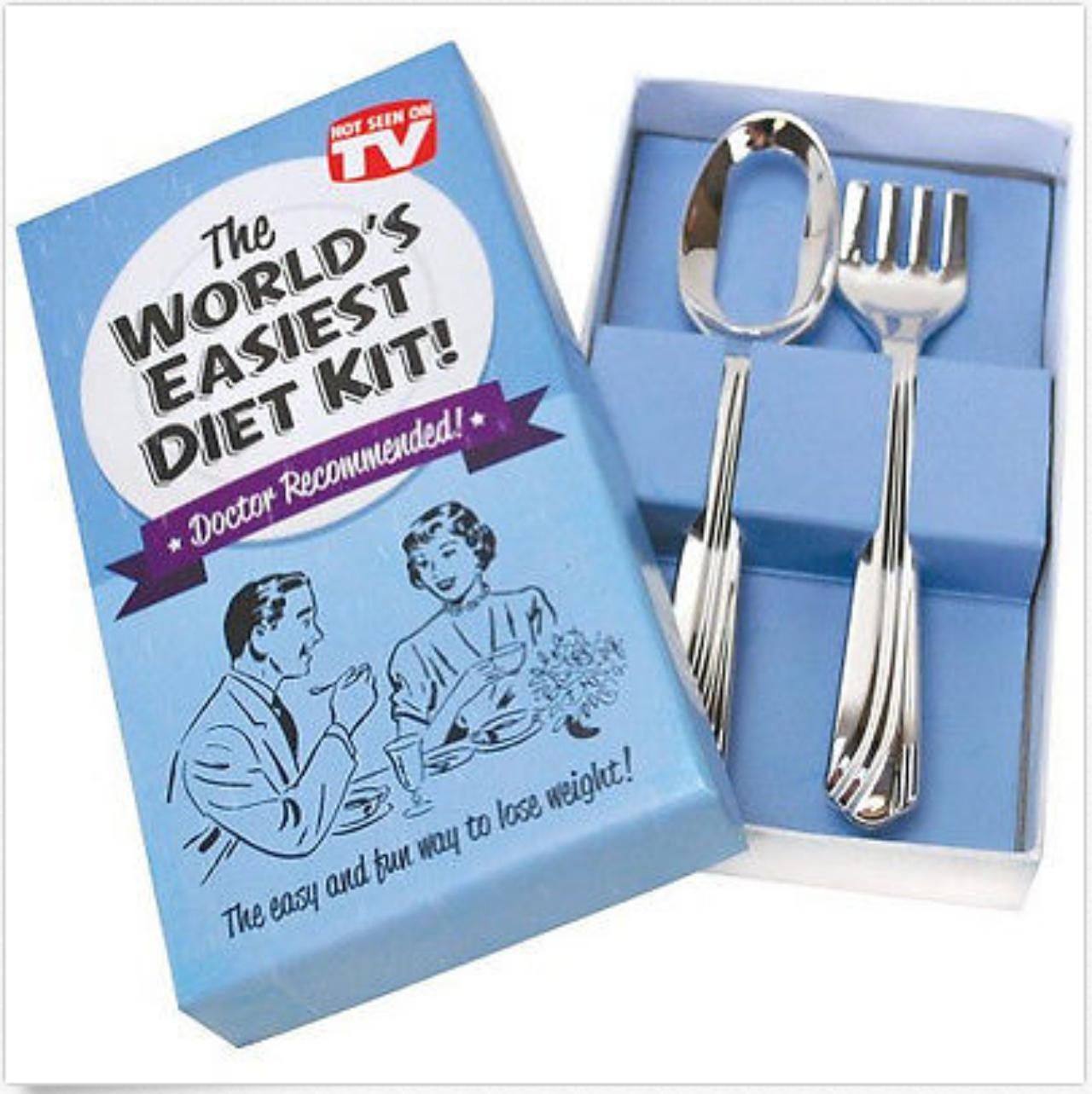 พอเห็นรูปก็หมดคำถามทันทีว่าทำไมถึงเหมาะสำหรับคนไดเอต ช้อนก็มีรูโหว่ตักอะไรไม่ได้ ส้อมก็สั้นอย่างนี้จะจิ้มอะไรขึ้น ถามว่าซื้อชุดนี้ไปแล้วจะกินยังไงดีกว่า