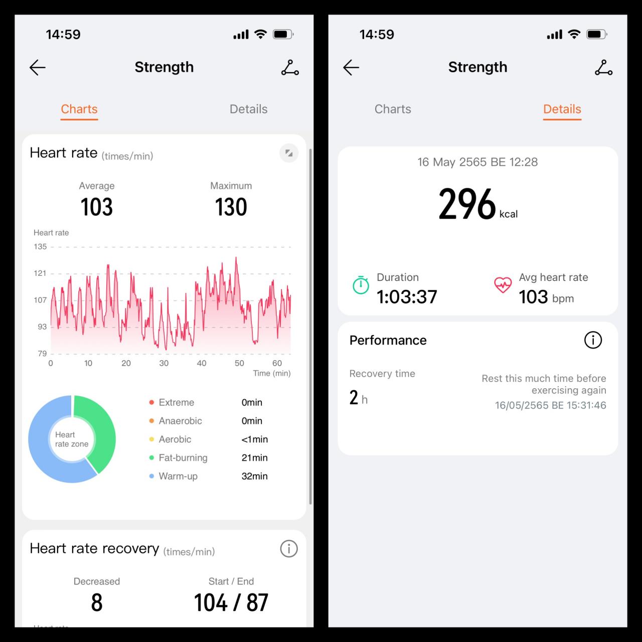 อย่างไรก็ตาม ถ้าเป็นเรื่องของการวิ่ง หรือปั่นจักรยาน ข้อมูลส่วนนี้นับได้ว่า ค่อนข้างครบอยู่แล้ว เพราะเป็นโหมดการออกกำลังกายกระแสหลัก ไม่น่าเป็นห่วง อีกทั้งยังมีโหมดช่วยวางแผนฝึกซ้อมรายสัปดาห์ มีฟีเจอร์ดูผลการฝึกซ้อม แผนการวิ่ง และการวิเคราะห์ร่างกาย ร่วมกับแอปพลิเคชัน Huawei Health