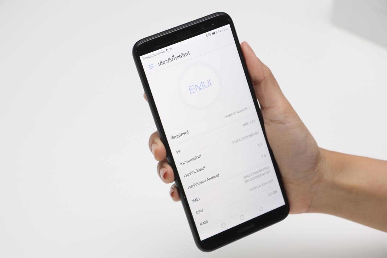 nova 2i มาพร้อมกับระบบปฏิบัติการแอนดรอยด์ 7.0, แรม 4GB, รองรับ MicroSD สูงสุด 256 GB, รองรับการใช้ 2 ซิม, น้ำหนัก 164 กรัม, และแบตเตอรี่ 3,340 mAh