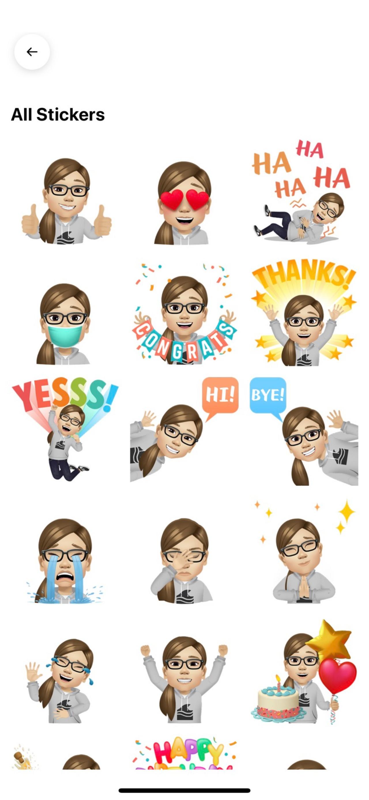 - นอกจากนี้ ผู้ใช้ยังสามารถดูรูปแบบของสติกเกอร์ Avatars ที่เราสร้างขึ้น ได้โดย กดเครื่องหมายสติกเกอร์ มุมบนขวามือ