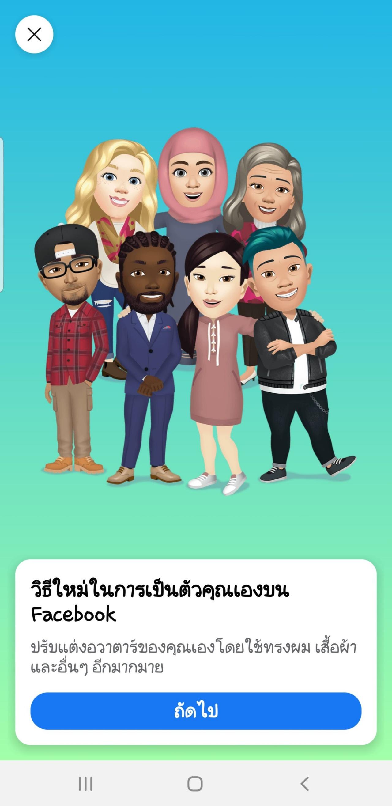 อวาตาร์ facebook เริ่มใช้งานได้แล้วในไทย ฟีเจอร์ "Avatars" ใน Facebook สร้างคาแรกเตอร์การ์ตูน ตั้งเป็นโปรไฟล์ หรือใช้แทนสติกเกอร์ บ่งบอกอารมณ์ส่งผ่านคอมเมนต์ และ Messenger