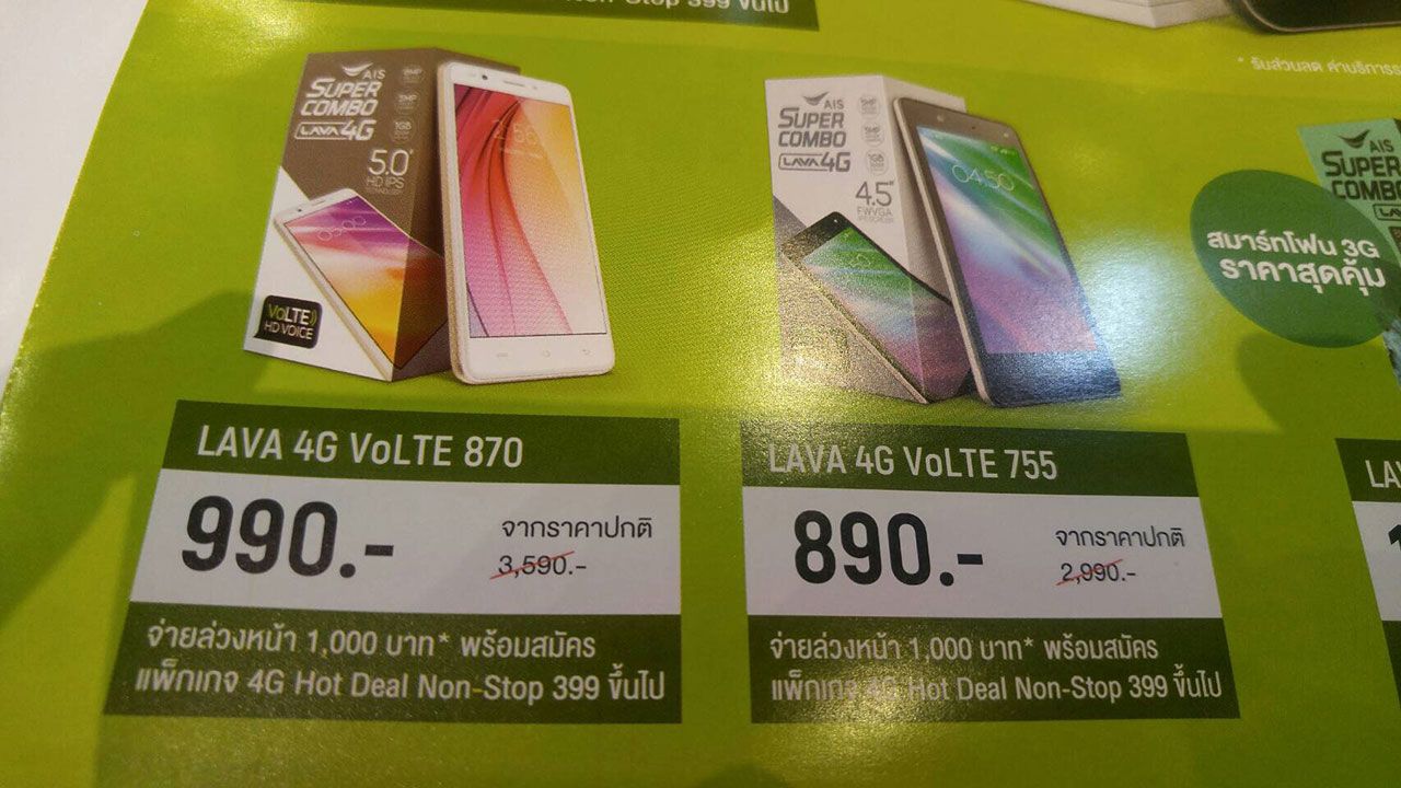 ส่วนสมาร์ทโฟนราคาถูกที่สุดภายในงานครั้งนี้ คือ ลาวา 4จี โวลเต้ 755 (Lava 4G VoLTE 755) ถูกนำมาจำหน่ายผ่านบูธเอไอเอส ด้วยราคาไม่ถึง 1,000 บาท
