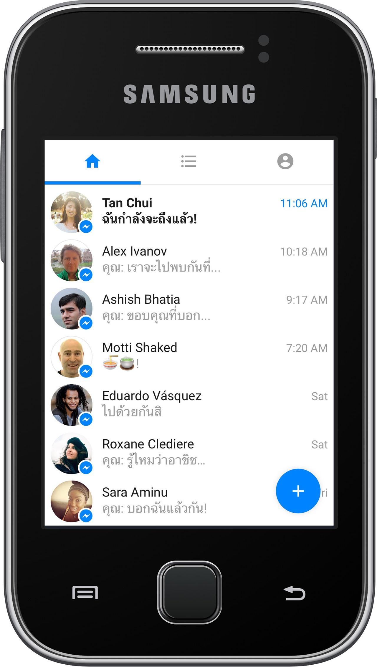2. เฟซบุ๊กระบุว่าทั่วโลกมีผู้ใช้งานแอป Messenger นับพันล้านคนต่อเดือน!!! ภายใต้สภาพการใช้งานที่แตกต่างกัน ทั้งสัญญาณอินเทอร์เน็ตและอุปกรณ์ที่ใช้ จึงได้พัฒนา Messenger Lite ให้มีจุดเด่น สามารถตอบสนองการใช้งานได้ดีขึ้น อาทิ...ขนาดไฟล์เล็กกว่าแอป Messenger ที่ใช้งานกันอยู่บนไอโอเอสและแอนดรอยด์ที่ใช้ โดยแอป Messenger Lite มีขนาดไฟล์เพียง 10 MB ส่วนบนไอโอเอสขนาดไฟล์อยู่ที่ 157 MB หรือประมาณ 50 MB บนแอนดรอยด์ เหมาะสำหรับผู้ที่มีพื้นที่ว่างบนเครื่องไม่มากนัก และอยากโหลดแอป Messenger มาใช้ เปลี่ยนไปโหลด Messenger Lite เหมาะกว่า