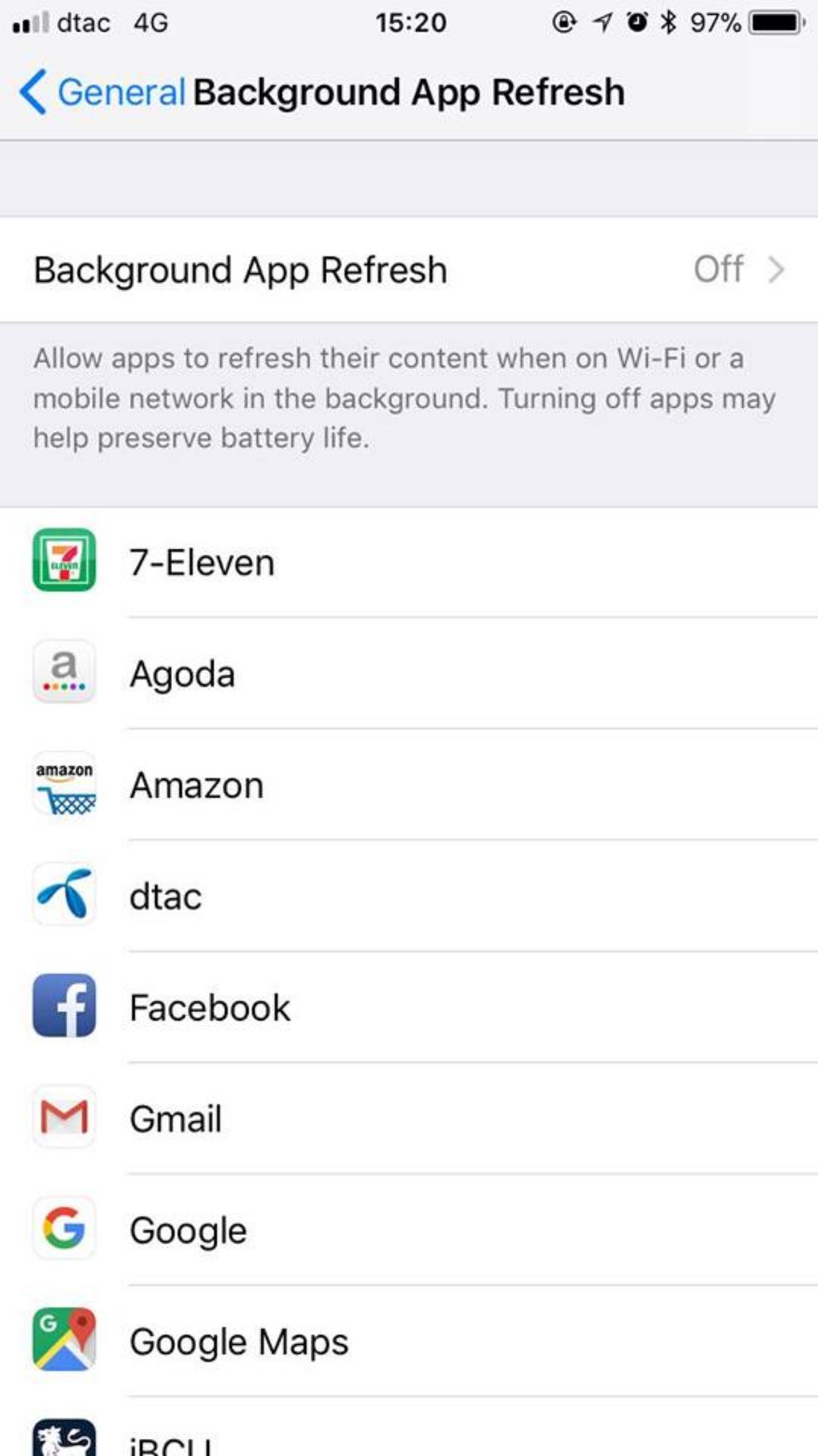 เนื่องจากหากเราไม่ปิด ระบบจะทำการดาวน์โหลดแอปฯ เบื้องหลังอยู่ตลอดเวลา ทำให้แบตเตอรี่หมดไวขึ้น ส่วนวิธีก็ง่ายๆ เพียงเข้าไปที่ Settings > General > Background App Refresh และกดปิด