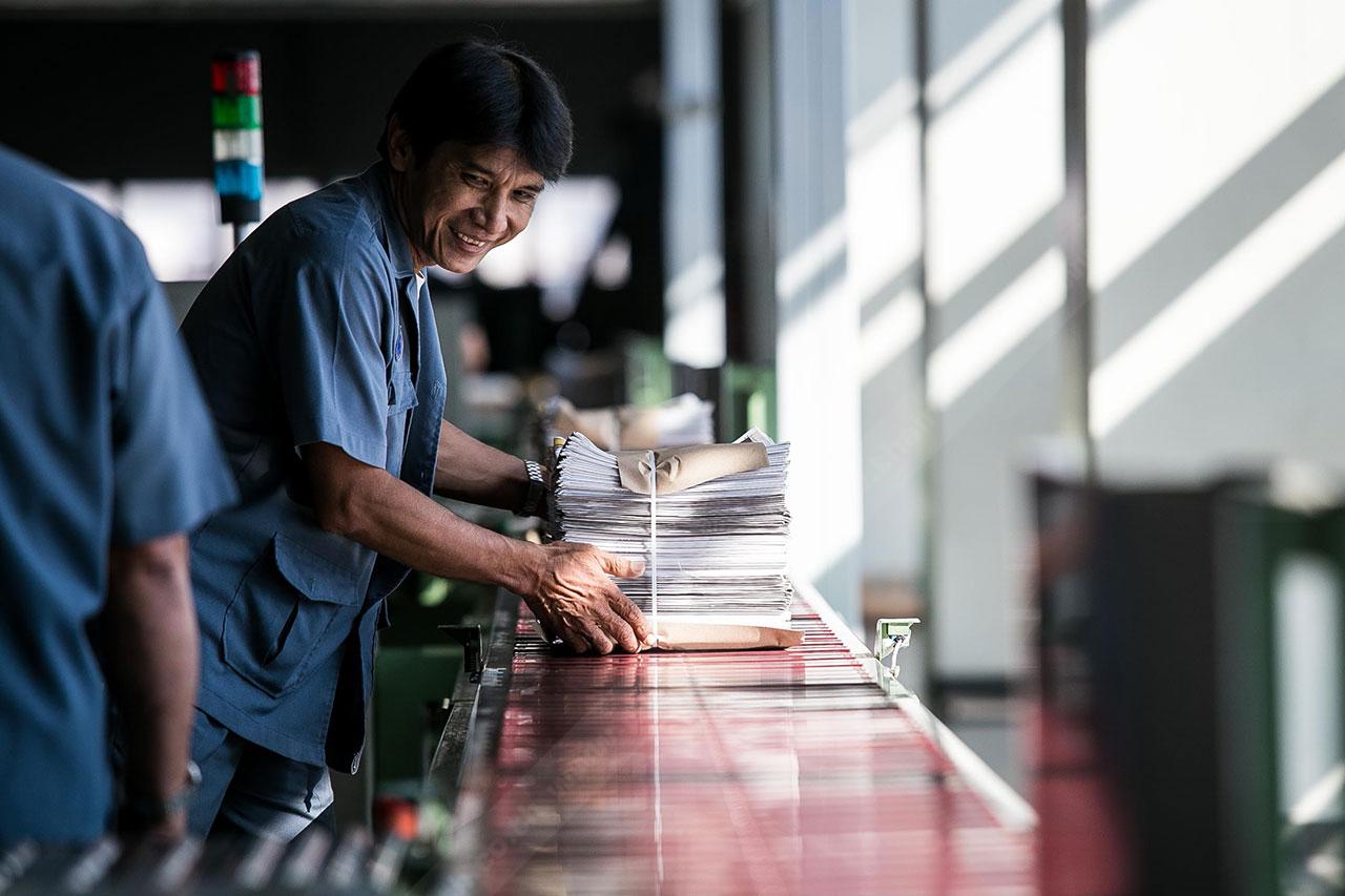 5. พูดถึง "จีโอแมน" เครื่องพิมพ์หนังสือพิมพ์ไทยรัฐสักนิด เครื่องดังกล่าวถือเป็นเครื่องพิมพ์ที่มีเทคโนโลยีการผลิตในระดับสูง มีกำลังการผลิตสูงที่สุดในเอเชียตะวันออกเฉียงใต้ โดยสามารถพิมพ์สีได้ 64 หน้า/วินาที หรือพิมพ์ขาวดำได้ 96 หน้า/วินาที และจากเครื่องพิมพ์ทั้งหมด 6 เครื่อง จึงสามารถพิมพ์ได้สูงสุดราว 100 ฉบับ/วินาที หรือ 360,000 ฉบับ/ชั่วโมง