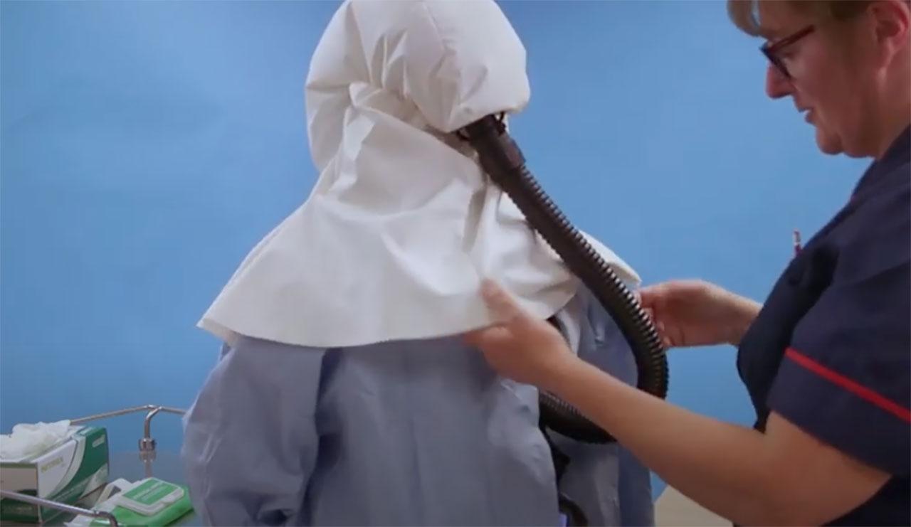 สำหรับการสวมใส่ ที่สำคัญก่อนใส่ต้องดูว่าแบตเตอรี่มีเพียงพอกับเวลาปฏิบัติงานหรือไม่ และต้องมีผู้ช่วยในการสวมใส่ รวมถึงเมื่อปฏิบัติภารกิจเรียบร้อยแล้ว ก็ต้องมีผู้ช่วยในการถอดออก เพื่อป้องกันการติดเชื้อด้วย