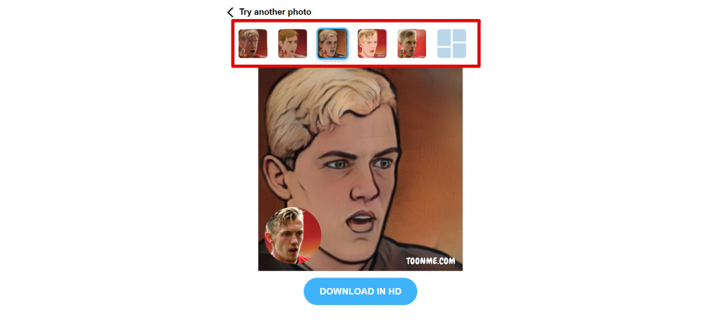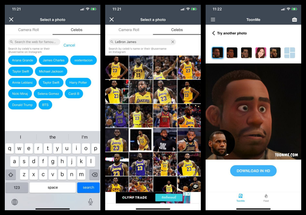 นอกจากนี้ ถ้าหากไม่อยากใช้ภาพของตัวเอง ผู้ใช้งานสามารถเลือกไปที่แท็บ Celebs เพื่อให้ระบบของ Toonme ทำภาพของเซเลบคนนั้นๆ ออกมาในรูปแบบการ์ตูนได้เช่นกัน
