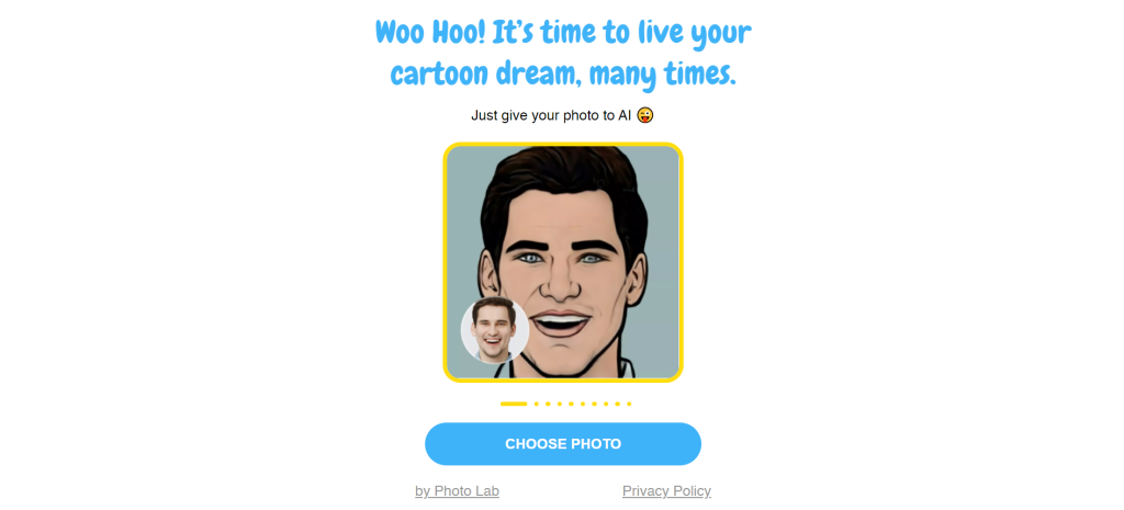 จากนั้นเลือกภาพที่ต้องการ (Choose Photo) ต่อจากนั้นระบบจะใช้เวลาในการประมวลภาพสักระยะหนึ่ง ก่อนที่จะได้ภาพของเราในสไตล์การ์ตูนดิสนีย์ในที่สุด