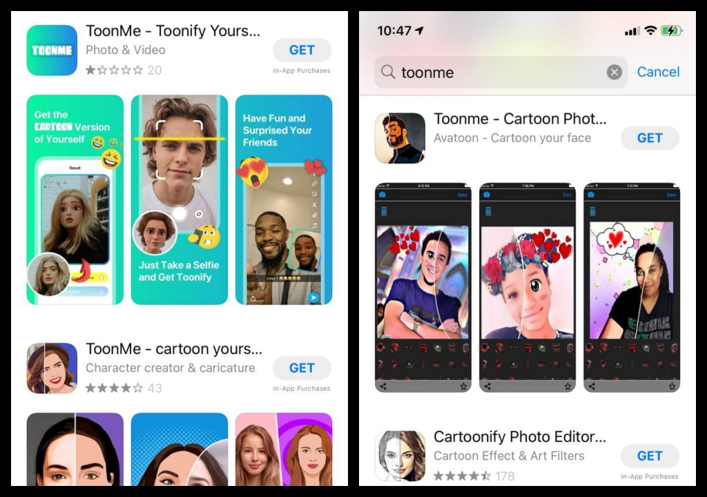 อย่างไรก็ตาม แอปพลิเคชัน Toonme บนสมาร์ทโฟนจากเท่าที่เสิร์ชมา จะมีด้วยกัน 3 แอปพลิเคชัน แต่ที่ชาวโซเชียลบนโลกออนไลน์ใช้กันจะเป็นแอปพลิเคชันที่มีชื่อว่า Toonme - cartoon yourself!