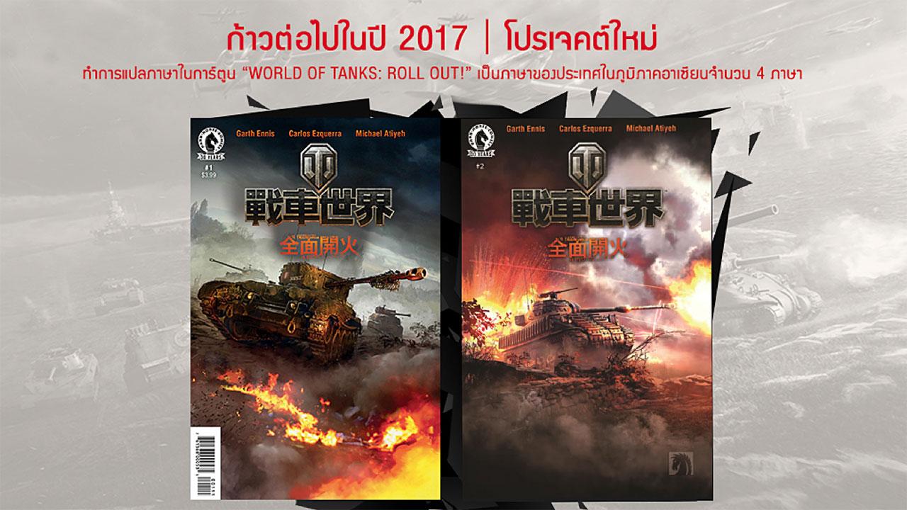 กก.บริหารบริษัท ออนไลน์ เกมมิ่ง พอร์ทัล กล่าวด้วยว่า นอกจากนี้วอร์เกมมิ่งยังมีอีกหนึ่งโครงการสำคัญนั่นคือ การแปลภาษาของ World of Tanks: Roll Out การ์ตูนเรื่องแรกที่สร้างสรรค์ขึ้นโดย Wargaming’s Pular โดยทาง Dark Horse ได้บรรลุข้อตกลงร่วมกันกับ Wargaming ในการแปลภาษาการ์ตูนเรื่องนี้เพิ่มในภาษาของภูมิภาคอาเซียนจำนวน 4 ภาษา แฟนๆ เกม WOT ห้ามพลาดเป็นอันขาด.