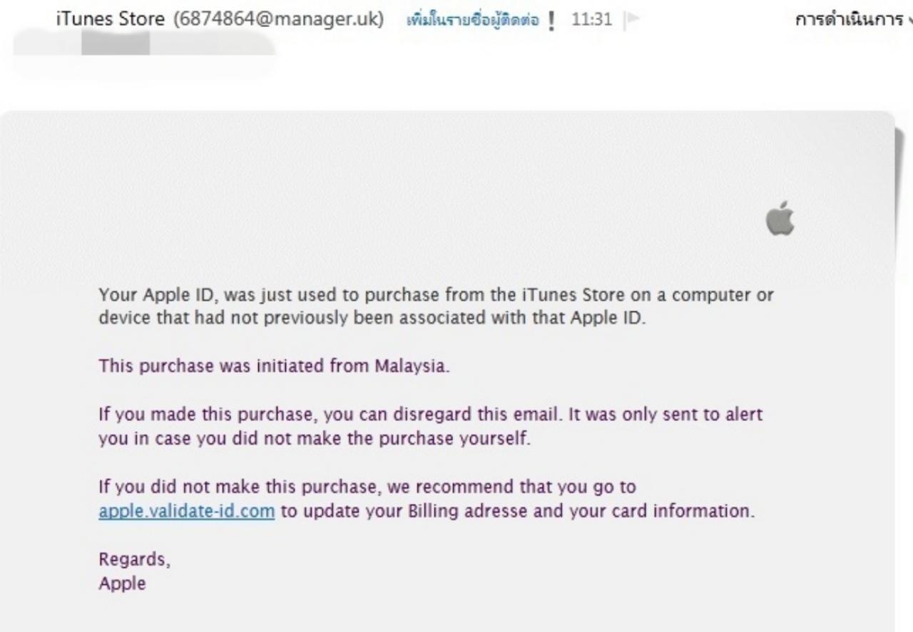 ในกรณีนี้ มีเว็บไซต์องค์กรใหญ่ๆ โดนเหมือนกัน อาทิ Apple ที่สร้างอีเมลปลอม สุ่มส่งไปยังอีเมลทั่วโลก เพื่อขโมยข้อมูล Apple ID และข้อมูลบัตรเครดิตจนทำให้เสียเงินแบบงงๆ หากหลงคลิกเข้าไปแล้ว อย่าลืมสังเกตชื่ออีเมล และ URL ให้ดีๆ ว่าใช้ apple.com หรือไม่ เพราะเคยเกิดกรณีปลอมชื่อเว็บไซต์แบบแนบเนียนเป็น apple-secutitys.co ถ้าไม่สังเกตดีๆ จับไม่ได้เลยทีเดียว