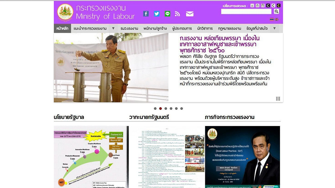 เกิดประเด็นทันทีกรณีรัฐบาลประกาศใช้ พ.ร.ก.การบริหารจัดการการทำงานของคนต่างด้าว พ.ศ.2560 เพื่อบริหารจัดการแรงงานต่างด้าวในไทย ซึ่งเข้ามาทำงานไม่ถูกต้องให้ถูกกฎหมายและเป็นไปตามหลักสากล จนล่าสุดต้องชะลอบังคับใช้บางส่วน ผู้สนใจศึกษาข้อมูลเกี่ยวกับแรงงานด้านต่างๆ เพิ่มเติมได้ที่เว็บไซต์กระทรวงแรงงาน mol.go.thกฎหมายแรงงาน นำเสนอกฎหมายเกี่ยวกับแรงงานทั้งหมด รวมทั้งกฎหมายที่เกี่ยวข้องกับการทำงาน และกฎหมายแรงงานสำหรับผู้ประกอบการ ผู้ประกอบการ รวบรวมข้อมูลข้อปฏิบัติเกี่ยวกับการว่าจ้างแรงงานต่างด้าว นอกจากนั้น หน้าหลัก ยังนำเสนอข้อมูลสำคัญและสถานการณ์ด้านแรงงานในไทย...