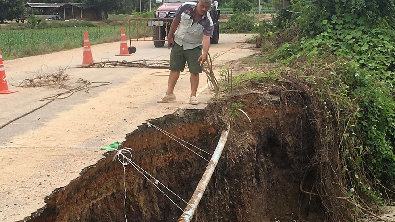 เมื่อเวลา 16.00 น.วันที่ 23 ก.ค. นายสมศักดิ์ ใจงาม กำนัน ต. หนองลาน อ.ท่ามะกา จ.กาญจนบุรี ได้รายงานให้นายกิตตินันท์ อรรถบท นายอำเภอท่ามะกา ทราบว่ามีผู้ประกอบการดูดทรายรายหนึ่ง ในหมู่บ้านรางหว้า หมู่ 5 ต.หนองลาน ได้ดูดทรายจนถนนลาดยางในหมู่บ้านพังทลายระยะทางยาวกว่า 10 เมตร ขอให้หน่วยงานไหนที่รับผิดชอบไปตรวจสอบด้วย และขออนุญาตปิดเส้นทางสัญจรชั่วคราวเพื่อความปลอดภัยของผู้ใช้ทางสัญจรต่อไปนายสมศักดิ์เปิดเผยว่า ชาวบ้านบ้านรางหว้าได้ร้องเรียนผ่านทางผู้ใหญ่บ้านว่าได้รับผลกระทบจากการประกอบกิจการดูดทรายในพื้นที่ เป็นเหตุให้เส้นถนนในหมู่บ้านพังเสียหาย หากปล่อยให้ดูดทรายต่อไปจะทำให้ถนนพังหรือขาดได้ ไปตรวจสอบพบว่าขอบถนนเริ่มพังทลายระยะทางยาวกว่า 10 เมตรและพบว่ามีโพรงน้ำกัดเซาะเข้าไปในดินใต้ถนนจนเป็นโพรง และเริ่มขยายวงกว้างมากขึ้นเรื่อยๆ หากปล่อยให้เป็นแบบนี้จะก่อให้เกิดอันตรายกับประชาชนที่สัญจรไปมา และถนนเป็นทรัพย์สินของทางราชการ ถือว่าเป็นที่ดินสาธารณประโยชน์ จึงรายงานให้ทางอำเภอท่ามะกาได้รับทราบเพื่อนำเรื่องเข้าสู่คณะกรรมการตรวจสอบบ่อทรายในพื้นที่ ต.หนองลาน ให้เร่งแก้ปัญหานี้อย่างเร่งด่วนต่อไปมีรายงานข่าวว่า ก่อนหน้านี้คณะกรรมการ ตรวจสอบบ่อทรายในพื้นที่ ต.หนองลาน ได้ไปตรวจสอบบ่อทรายที่สร้างผลกระทบต่อพื้นที่ชลประทาน 2 บ่อ ล่าสุดอุตสาหกรรมจังหวัดกาญจนบุรีได้ใช้อำนาจตาม ม.39 สั่งปิดสถานประกอบการดูดทรายเพื่อให้ปรับปรุงตามระเบียบของกรมโรงงานอุตสาหกรรม และมาเกิดปัญหารายนี้เป็นรายที่ 3.
