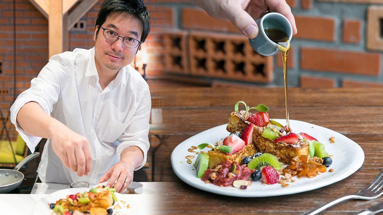 สำหรับผู้ที่ชอบรับประทานขนมและผลไม้เมนูของหวานวันนี้คงจะถูกใจไม่น้อย เพราะใช้ผลไม้ค่อนข้างเยอะ ทั้งสตรอเบอรี่ บลูเบอรี่ สับปะรดกีวี และสตรอเบอรี่รูบาร์บแยม นอกจากนี้ ตัวน้ำเชื่อมที่ใช้ ก็เลือกทำจากมะตูม ซึ่งปกติผลไม้พื้นบ้านแบบไทยๆ ไม่ค่อยมีใครเอามาทำขนมฝรั่ง แถมมะตูม มีฤทธิ์เย็น ยังช่วยลดความดัน และมีสารต้านอนุมูลอิสระ เมนูนี้จึงมีครบรสและมีประโยชน์ด้วย คุณแดน-ดนภัทร พร้อมพันธุ์ รองกรรมการผู้จัดการ ฝ่ายการจัดการการลงทุน (Investment) บริษัท กลุ่มเซ็นทรัล จำกัด แต่ด้วยความที่ชอบทำอาหารเป็นการส่วนตัว คุณแดนก็ได้ยึดเป็นงานอดิเรก และยังกลายเป็นส่วนเติมเต็มให้กับธุรกิจร้านอาหารของครอบครัวพร้อมพันธุ์ The Girl and The Pig ที่ชั้น 5 ศูนย์การค้าเซ็นทรัล เอ็มบาสซี อีกด้วย โดยคุณแดนได้เก็บเกี่ยวประสบการณ์จากการลิ้มลองและลงมือทำอาหารที่ชอบไว้มากมายในระหว่างศึกษาที่อเมริกา และกล้าที่จะลองผิดลองถูกไปเรื่อย จนได้รสชาติที่หลายคนได้ชิมต้องยกนิ้วให้ในความอร่อย ไม่ว่าจะเป็นอาหารหรือขนมที่ชอบกิน คุณแดนบอกว่า ก็จะลองทำเองด้วย โดยคิดและปรับสูตรเองบ้าง แต่ขนมนั้นด้วยความหวานและสัดส่วนของแป้ง น้ำ ไข่ น้ำตาล มีสูตรค่อนข้างตายตัว ฉะนั้นสำคัญมากคือเราต้องตวงต้องทำตามสูตร แต่ก็สามารถปรับรสชาติตามความชอบได้ เช่น หวานเกินไปเราก็ลดน้ำตาล และวันนี้คุณแดนจึงแนะนำเมนูของหวาน เฟรนซ์โทสต์ผลไม้ ราดด้วยน้ำเชื่อมมะตูม (Fresh Fruit French Toast with homemade bale fruit syrup) ที่จะกินเป็นอาหารเช้าก็ได้ เป็นอาหารว่างยามบ่ายก็ดี สำหรับผู้ที่ชอบรับประทานขนมและผลไม้ เมนูนี้จะมีครบรสและมีประโยชน์ด้วย โดยใช้ผลไม้ค่อนข้างเยอะ ทั้งสตรอเบอรี่ บลูเบอรี่ สับปะรดสด กีวี และสตรอเบอรี่รูบาร์บแยม นอกจากนี้ ตัวน้ำเชื่อมที่เลือกทำจากมะตูม เพราะชอบกลิ่นและรสของมะตูม ผลไม้พื้นบ้านแบบไทยๆ ซึ่งปกติไม่ค่อยมีใครเอามาทำขนมฝรั่ง แถมมะตูม มีฤทธิ์เย็น ยังช่วยลดความดัน มีสารต้านมะเร็ง ก็เลยเอามาประยุกต์เข้ากับขนมจานนี้ ซึ่งเป็นสูตรที่ดัดแปลงปรับแต่งขึ้นเองจนได้รสชาติขนมหวานที่ถูกใจ ส่วนผสมหลัก : ขนมปังหั่นเป็นท่อน หนาประมาณ 1 นิ้ว (แนะนำใช้ขนมปังที่แห้งค้างคืนจะดีที่สุด)/ไข่แดง 1 ฟอง/ไข่ไก่ 1 ฟอง/นม ¼ ถ้วย/วิปปิ้งครีม ¼ ถ้วย/ผงอบเชย ¼ ช้อนชา/ผิวส้ม ½ ช้อนชา/วานิลลาเข้มข้น ½ ช้อนชา/ผลไม้สดหั่นเป็นชิ้นๆ (สตรอเบอรี่, บลูเบอรี่, สับปะรด, กีวี หรือตามความชอบ)/กราโนล่าหรือข้าวโอ๊ตผสมเมล็ดถั่ว/ต้นยอดทานตะวัน/น้ำมันรำข้าว.....วิธีทำ 1) ผสมไข่แดง ไข่ นม วิปปิ้งครีม ผงอบเชย ผิวส้ม และวานิลลา 