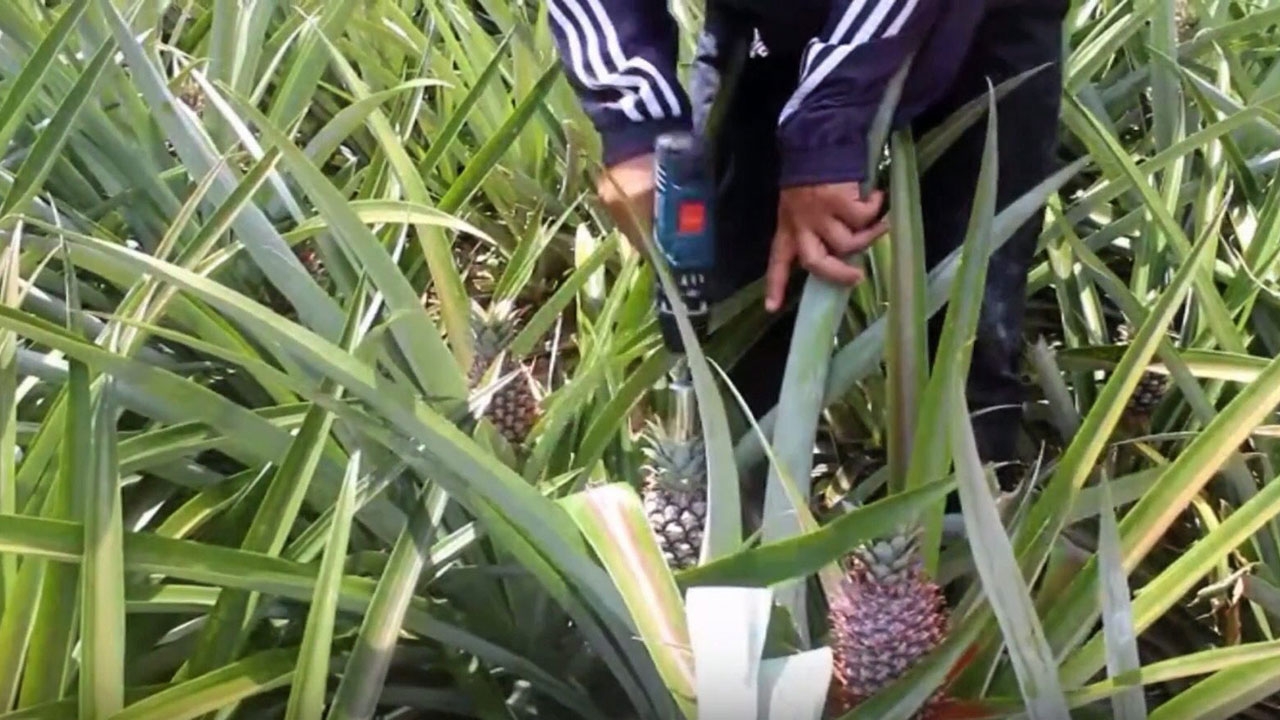 การปลูกสับปะรดให้ได้ลูกผลมีขนาดใหญ่ ได้น้ำหนัก จะต้องแคะจุกหัวสับปะรดทิ้ง ด้วยแท่งเหล็ก หรือด้ามช้อน ทำให้เกษตรกรต้องใช้ทั้งเวลา และเหน็ดเหนื่อยเมื่อยล้าเพราะการปลูกสับปะรดในพื้นที่ 1 ไร่ ระยะห่าง 30×30 ซม. เว้นทางเดิน 45 ซม. จะมีต้นสับปะรดถึง 6,000-7,000 ต้น เมื่อถึงระยะที่สับปะรดออกหัว เกษตรกรจะต้องนำแท่งเหล็กหรือด้ามช้อนแคะจุกออก เพื่อป้องกันไม่ให้จุกใหญ่โตขึ้น ทำให้ผลสับปะรดไม่เจริญเติบโต แคระแกร็น มีขนาดเล็ก ขายไม่ได้ราคา พื้นที่ปลูกสับปะรด 10 ไร่ กว่าจะแคะตอนจุกหมดต้องใช้เวลานาน 1 สัปดาห์นายบัญชา เชิดชม และเพื่อนนักศึกษา วิทยาลัยการอาชีพบางสะพาน จ.ประจวบคีรีขันธ์ จึงร่วมกันประดิษฐ์เครื่องมือตอนจุก ขนาดกะทัดรัด ที่ใช้ง่าย สะดวกรวดเร็ว และมีราคาถูก โดยมี อ.เทอดศักดิ์ ชมเชย หัวหน้าแผนกวิชาโลหะการ เป็นที่ปรึกษา เป็นเครื่องมือตอนจุกสับปะรด ประกอบด้วยวัสดุหลัก 4 ชิ้น 1.ท่อเหล็กขนาด 1 นิ้ว มีบูตปิดหัว 2.แกนเหล็ก 4 หุน เชื่อมใบตัดเป็นเกลียว 6 หุน มีปลายแหลมคม 3. สปริงขนาด 6 มม. และ 4.เหล็กด้ามจับ 6 มม. ยาว 4 นิ้ว ตรงกลางเป็นเกลียวหมุนถอดเข้า-ออก นำมาประกอบเข้าด้วยกันทั้งหมด การงานตอนจุกสับปะรด จากเดิมที่ใช้เหล็ก และด้ามช้อนจะต้องใช้เวลา 1 นาทีต่อ 5 ต้น แต่เมื่อใช้เครื่องตอนจุก มีประสิทธิภาพการตอนได้เร็วขึ้นเป็น 1 นาทีต่อ 10 ต้น เร็วกว่าเดิมถึงเท่าตัว แถมยังใช้งานง่าย ไม่ปวดมือและหลังที่สำคัญยังพัฒนาปรับเปลี่ยนถอดปลายด้ามจับให้สามารถนำไปติดตั้งกับสว่านมือถือแบตเตอรี่ ยิ่งแคะตอนจุกได้เร็วมากขึ้นเป็น 100 ต้นต่อ 7 นาที...คนเดียวสามารถแคะตอนจุกสับปะรด 10 ไร่ ให้เสร็จได้ในวันเดียว ซึ่งได้ทดลองทำมาแล้วในแปลงปลูกสับปะรดหลายสายพันธุ์ ทั้งพันธุ์ปัตตาเวีย, พันธุ์โรงงาน ฯลฯ มานานเกือบ 1 ปี พบว่าเครื่องมือยังใช้ได้ดี ไม่ชำรุดง่าย มีต้นทุน 300 บาท ตอนนี้มีวางจำหน่ายให้เกษตรกรไปซื้อหามาใช้ได้ที่วิทยาลัยการอาชีพบางสะพาน สนใจสอบถามข้อมูลเพิ่มเติมที่ 08-1901-6494.
