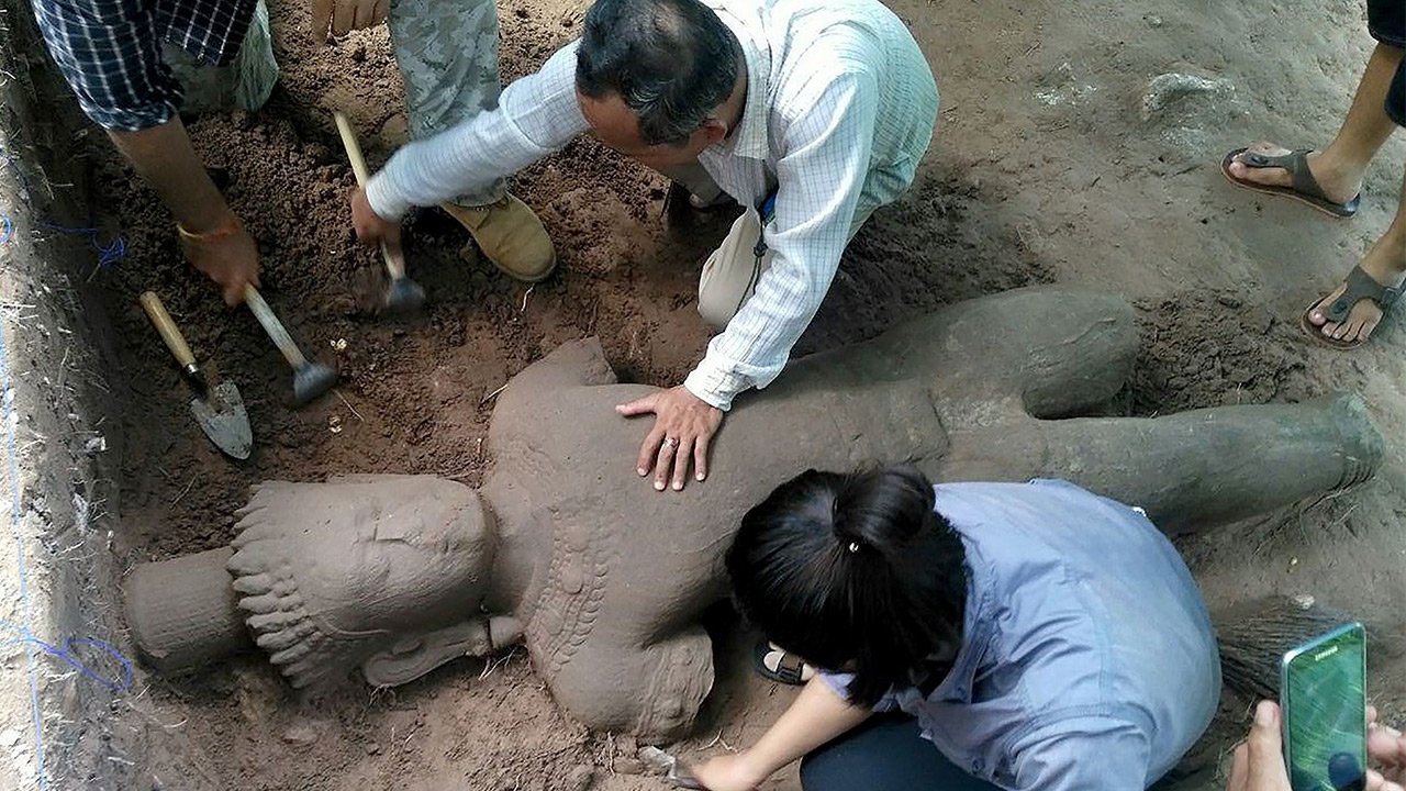นักโบราณคดีค้นพบรูปปั้น เทวรูปขนาดใหญ่ที่นครวัด