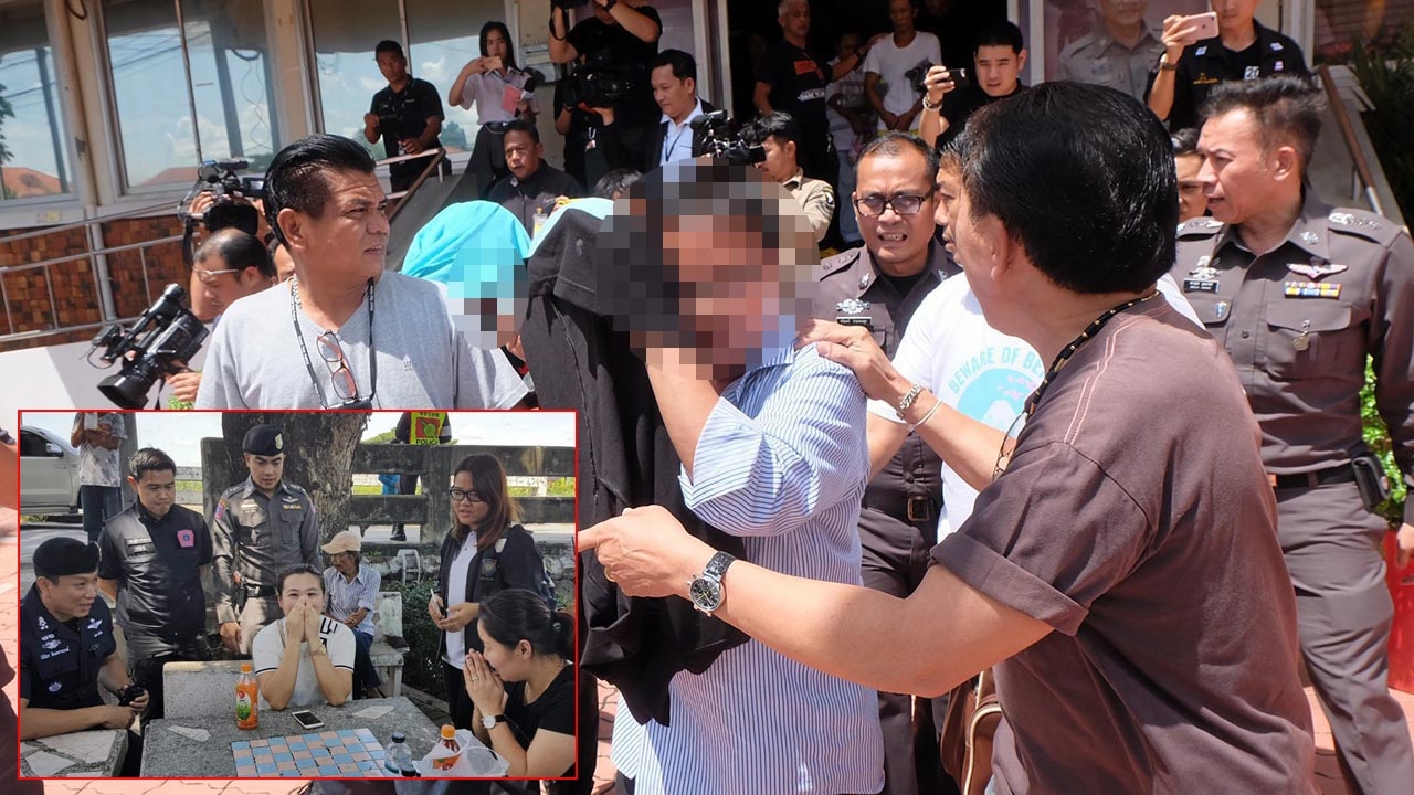 ตำรวจ สน.โคกคราม คุมตัว พ.ต.ท.ณัฐกฤษต์ ยุทยา (เสื้อคลุมบังหน้า) พนักงานสอบสวน กก.5 บก.ปอศ.1 ในสมาชิกแก๊งอุ้มเรียกค่าคุ้มครอง ไปฝาก ขังที่ศาลอาญา ส่วนภาพเล็กบรรดาผู้เสียหายทยอย เดินทางมาชี้ตัวผู้ก่อเหตุ.
